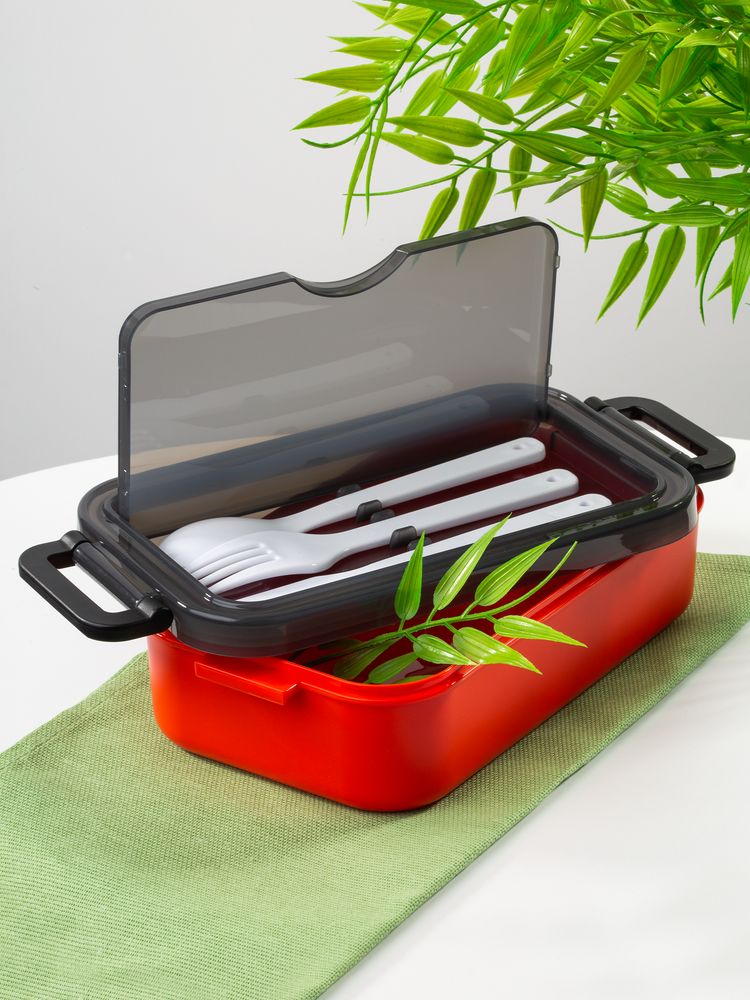 Базовый ланчбокс Pranzo в минималистичном исполнении ненавязчиво напоминает о пользе и простоте сбалансированного питания при любом ритме жизни. Будет незаменим на прогулке или пикнике, также его удобно брать с собой в офис или в школу.Удобная конструкция с крышкой на защелках обеспечивает надежную фиксацию. Специальное отделение под крышкой позволяет хранить столовые приборы, освобождая дополнительное пространство в сумке.Емкость 800 мл.Крышка на защелках с пространством для столовых приборовНабор столовых приборов в комплектеМожно использовать в микроволновой печиМожно мыть в посудомоечной машине (кроме крышки)