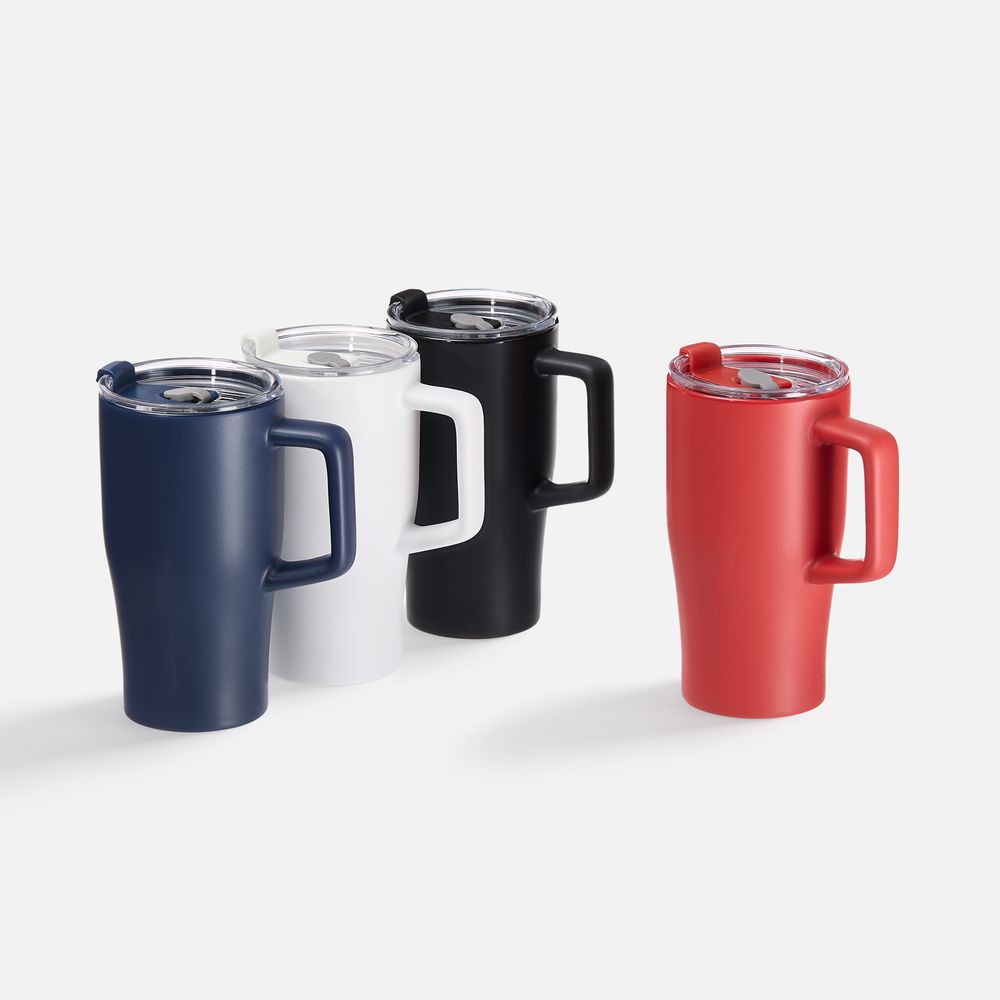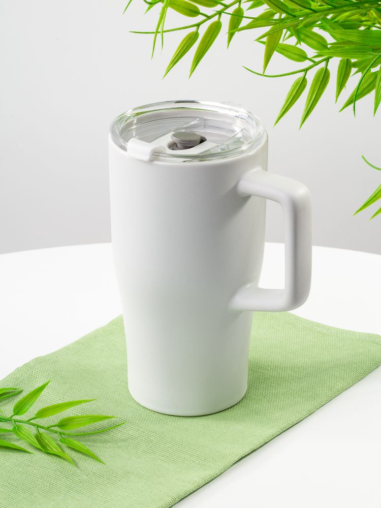 Кружка Grandios повторяет нашумевшую форму (и объем!) термостакана: высокий корпус плавно сужается книзу. Так вместительная кружка остается изящной, но все еще сохраняет устойчивость. А еще она подходит для большинства автомобильных подстаканников — на случай, если на утренний кофе совсем нет времени. Эргономичная ручка удобно лежит в руке, а прозрачная крышка с отверстием для питья не дает содержимому разлиться на ходу или быстро остыть. Последнее особенно важно с учетом большого объема — 520 мл чая, кофе или какао хватит надолго.Беспроигрышный вариант и для рабочих будней, и для домашних выходных.Емкость 520 мл.