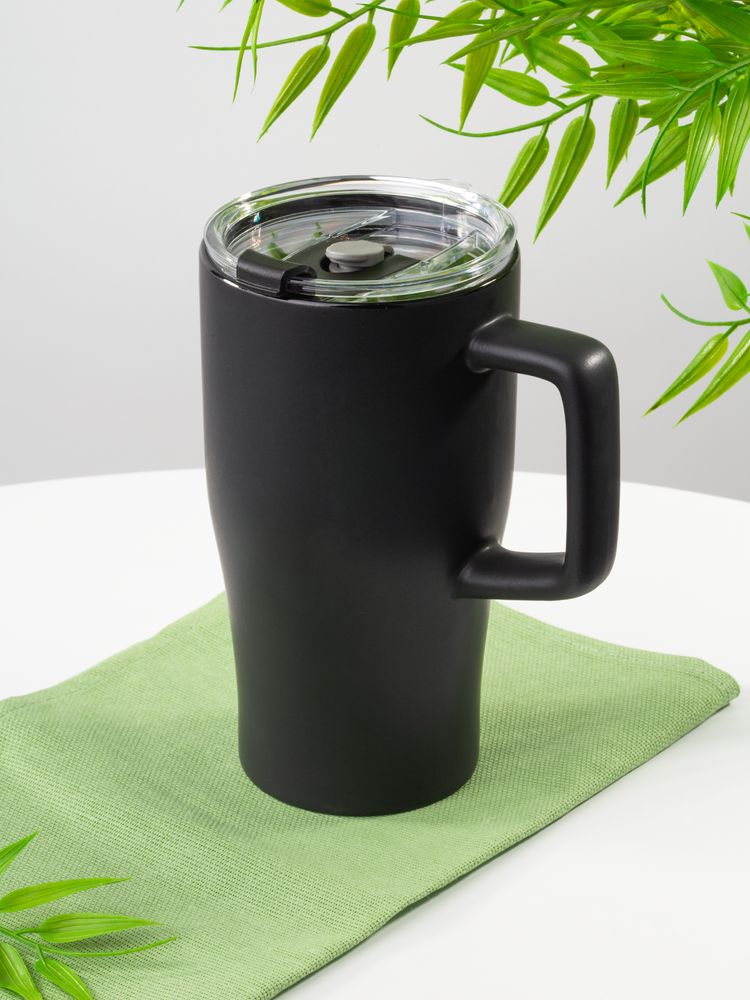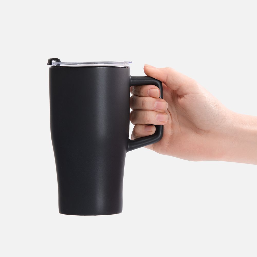 Кружка Grandios повторяет нашумевшую форму (и объем!) термостакана: высокий корпус плавно сужается книзу. Так вместительная кружка остается изящной, но все еще сохраняет устойчивость. А еще она подходит для большинства автомобильных подстаканников — на случай, если на утренний кофе совсем нет времени. Эргономичная ручка удобно лежит в руке, а прозрачная крышка с отверстием для питья не дает содержимому разлиться на ходу или быстро остыть. Последнее особенно важно с учетом большого объема — 520 мл чая, кофе или какао хватит надолго.Беспроигрышный вариант и для рабочих будней, и для домашних выходных.Емкость 520 мл.