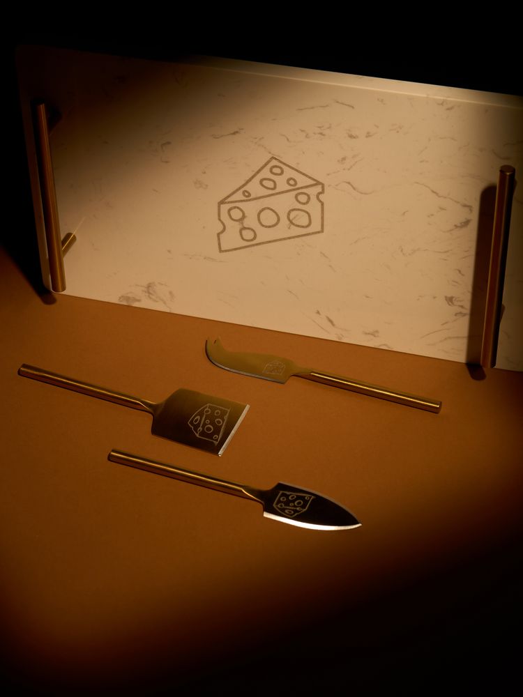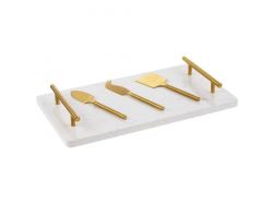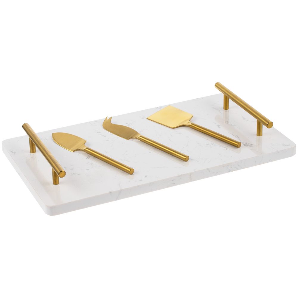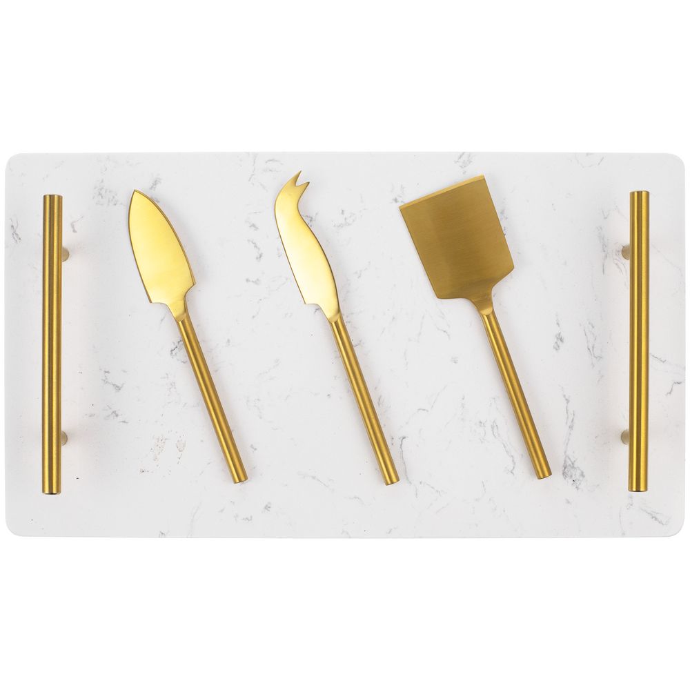 Сырный набор Chambery — выбор искушенных гурманов. В этом сете роскошно и продуманно все: изысканная кварцевая доска со специальными «ножками» для устойчивости и удобными ручками, а также стильные функциональные ножи для нарезки сыров разных сортов и твердости. Ведь на идеальной сырной тарелке обязательно должно быть несколько сортов! Золотистый цвет ручек и трех ножей подчеркивает статус всего набора и возвышенность самой сырной дегустации. При нарезке мягких сортов сыра особенно важно сохранить эстетичный вид ломтиков, поэтому здесь не обойтись без специальных ножей. Нож-лопатка удобен как для нарезки, так и для сервировки мягких и полутвердых сортов, а еще им можно красиво раскрошить твердый сыр. А нож с раздвоенным кончиком можно также использовать в качестве элегантной вилки. Листовидный нож для твердых сортов — это проверенная классика, которой можно доверить пармезан.В наборе:доска из кварцевого камня;нож-лопатка для мягких и полутвердых сортов;нож с раздвоенным кончиком для сыров средней мягкости;листовидный нож для сыра твердых сортов.Кварц — прочный и долговечный камень, безопасен при контакте с пищей, прост в уходе и не впитывает влагу.Поставляется в транспортной упаковке.