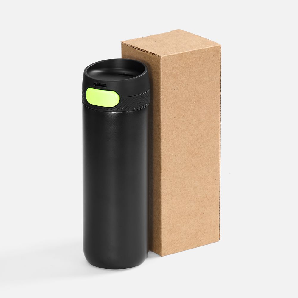 Термостакан X1 с цветной кнопкой, черный с желтым
