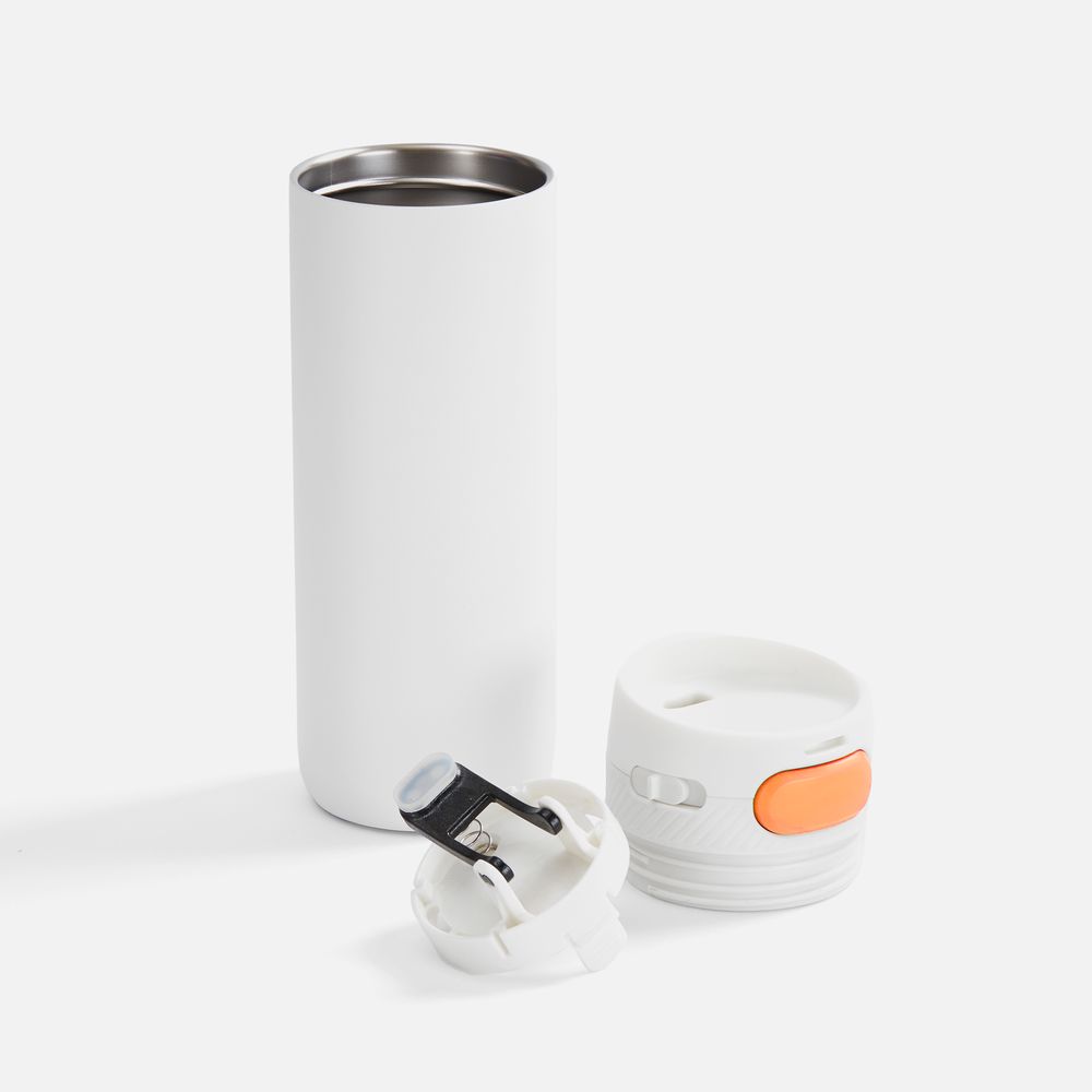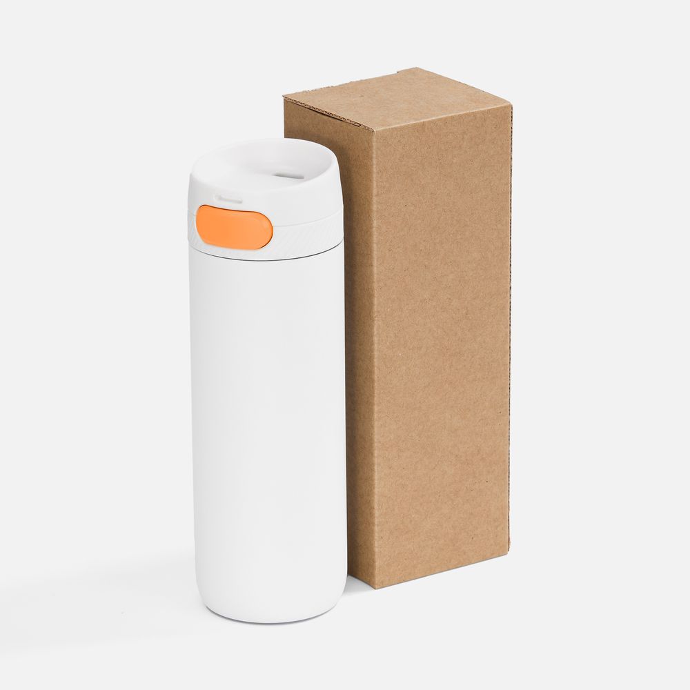 Термостакан X1 с цветной кнопкой, белый с оранжевым