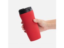 Емкость 350 мл.Двухслойная конструкция из нержавеющей стали снаружи и пищевого пластика внутри. Герметичная завинчивающаяся крышка с откидным клапаном для питья. Покрытие софт-тач. В отверстие в крышке можно вставить шнурок для удобного ношения стакана на руке. Шнурок в комплект не входит.Крышку можно мыть в посудомоечной машине, корпус рекомендуем мыть вручную.Изменение температуры напитка внутри закрытого стакана: При температуре окружающей среды +20 °Сначальная температура — 95 °Счерез 1 час — 70 °Счерез 2 часа — 50 °С
