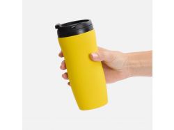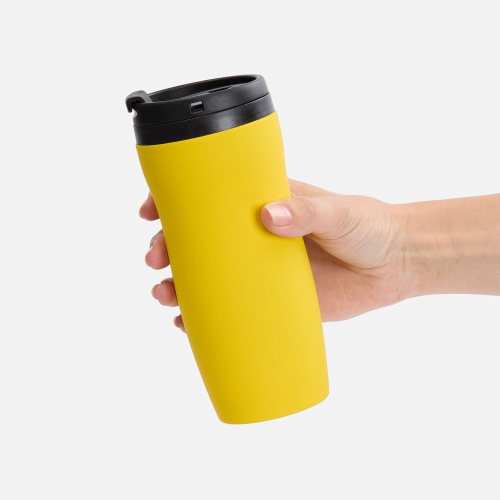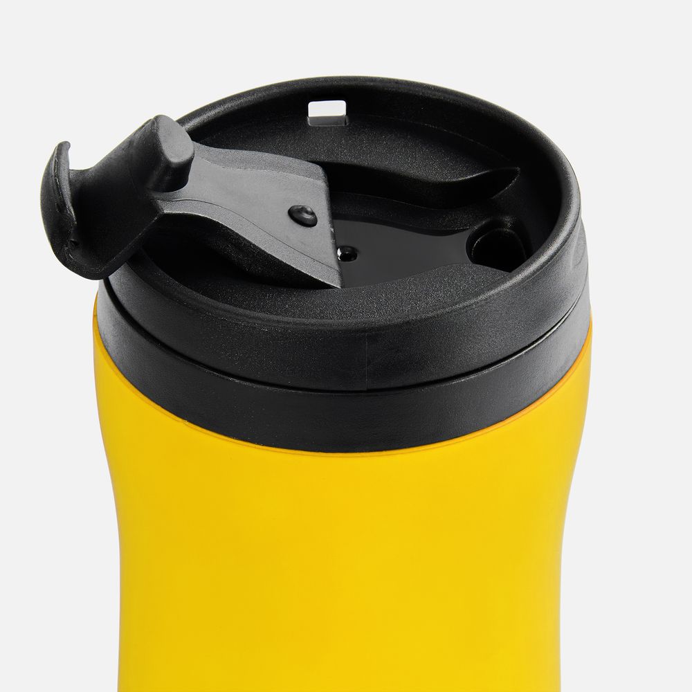 Емкость 350 мл.Двухслойная конструкция из нержавеющей стали снаружи и пищевого пластика внутри. Герметичная завинчивающаяся крышка с откидным клапаном для питья. Покрытие софт-тач. В отверстие в крышке можно вставить шнурок для удобного ношения стакана на руке. Шнурок в комплект не входит.Крышку можно мыть в посудомоечной машине, корпус рекомендуем мыть вручную.Изменение температуры напитка внутри закрытого стакана: При температуре окружающей среды +20 °Сначальная температура — 95 °Счерез 1 час — 70 °Счерез 2 часа — 50 °С
