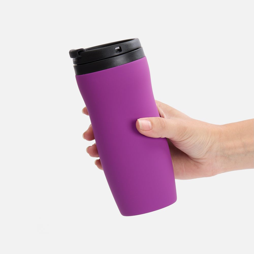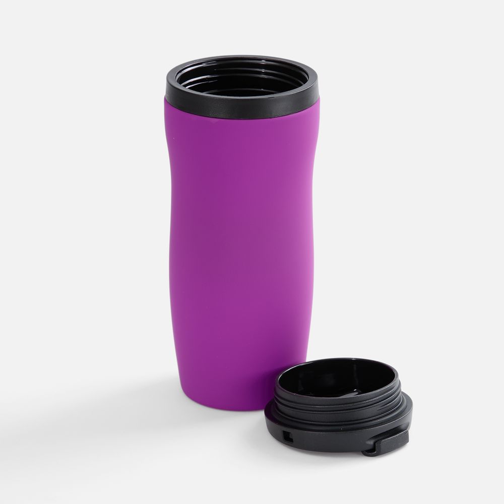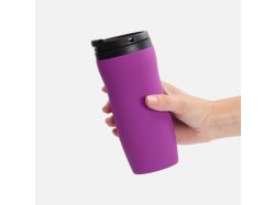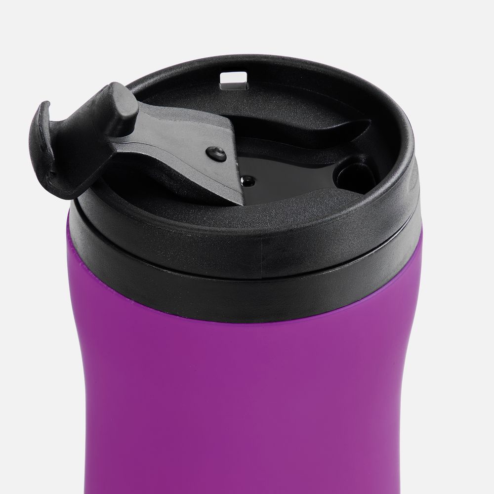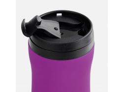 Емкость 350 мл.Двухслойная конструкция из нержавеющей стали снаружи и пищевого пластика внутри. Герметичная завинчивающаяся крышка с откидным клапаном для питья. Покрытие софт-тач. В отверстие в крышке можно вставить шнурок для удобного ношения стакана на руке. Шнурок в комплект не входит.Крышку можно мыть в посудомоечной машине, корпус рекомендуем мыть вручную.Изменение температуры напитка внутри закрытого стакана: При температуре окружающей среды +20 °Сначальная температура — 95 °Счерез 1 час — 70 °Счерез 2 часа — 50 °С