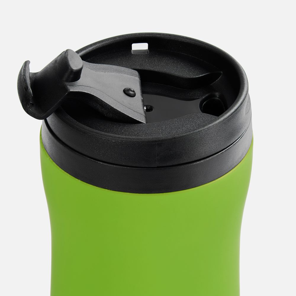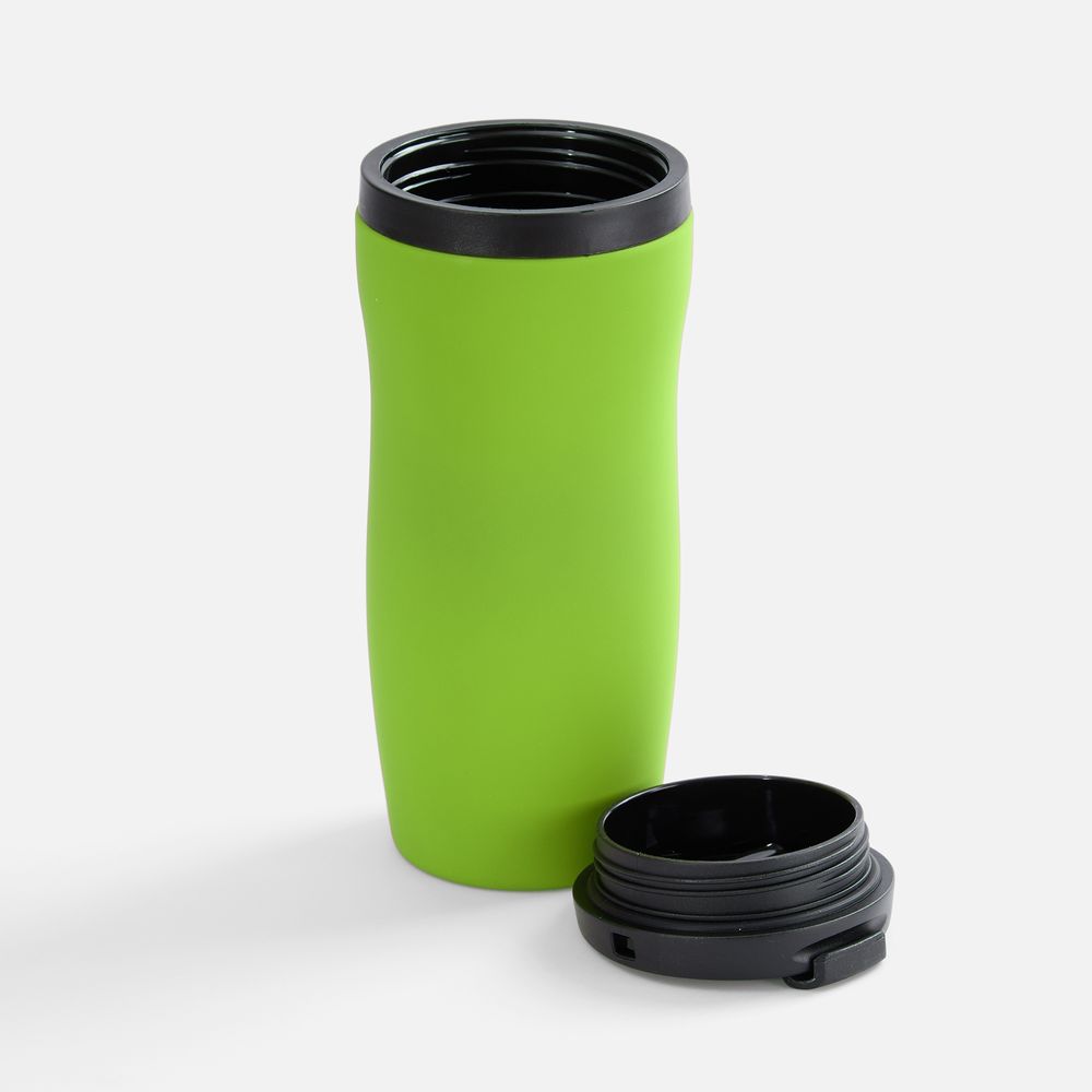 Емкость 350 мл.Двухслойная конструкция из нержавеющей стали снаружи и пищевого пластика внутри. Герметичная завинчивающаяся крышка с откидным клапаном для питья. Покрытие софт-тач. В отверстие в крышке можно вставить шнурок для удобного ношения стакана на руке. Шнурок в комплект не входит.Крышку можно мыть в посудомоечной машине, корпус рекомендуем мыть вручную.Изменение температуры напитка внутри закрытого стакана: При температуре окружающей среды +20 °Сначальная температура — 95 °Счерез 1 час — 70 °Счерез 2 часа — 50 °С
