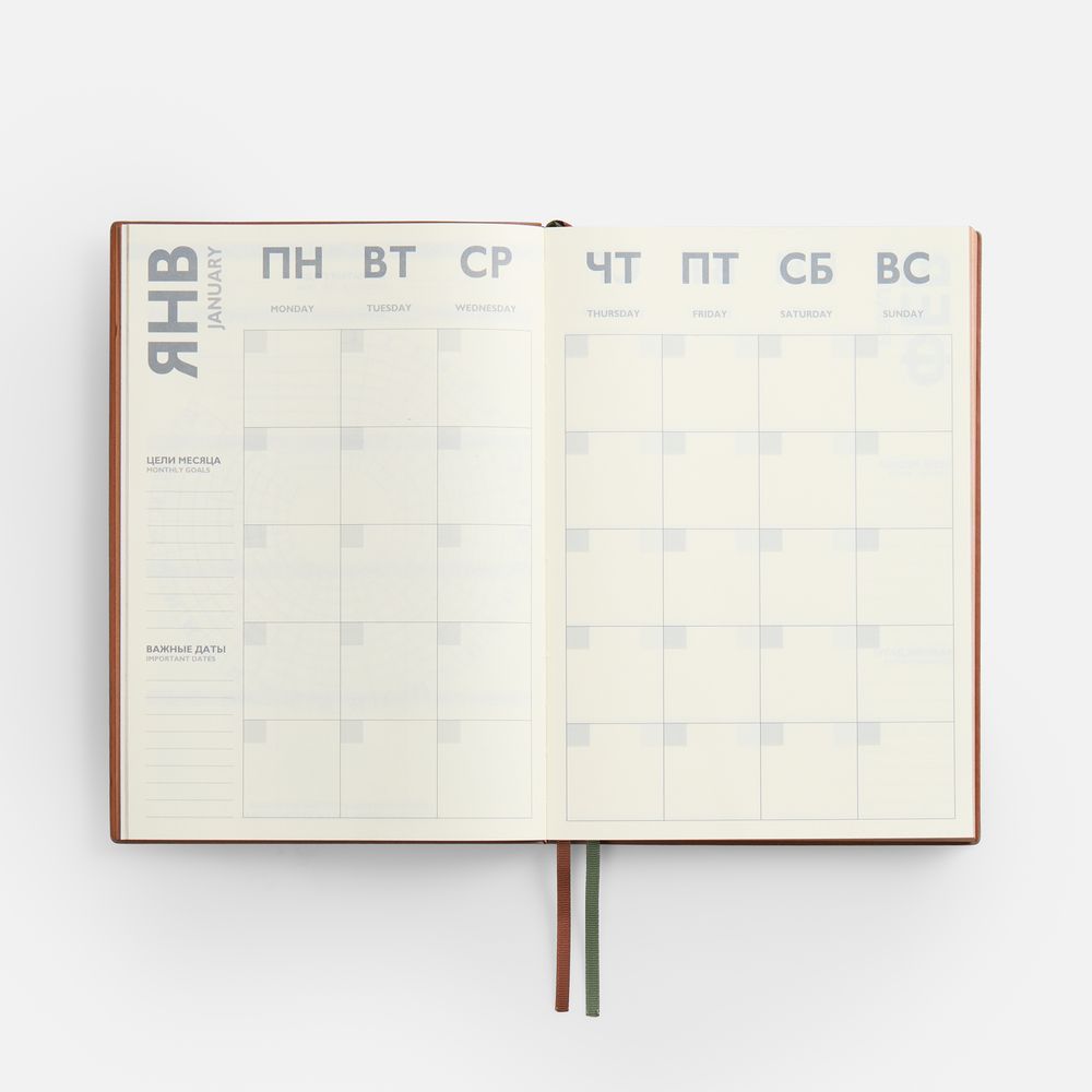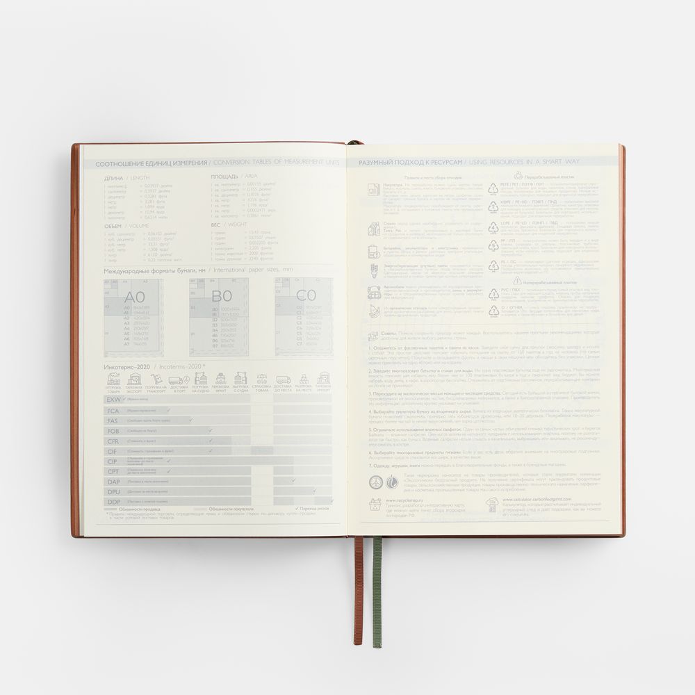 Ежедневник с гибкой обложкой и закладкой из искусственной кожи, дополнен капталом и двойным ляссе.Блок cо справочными материалами:Кол-во страниц — 320;Бумага — тонированная, плотность 70 г/м².