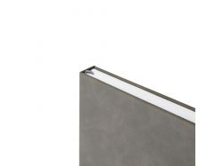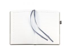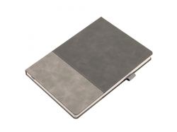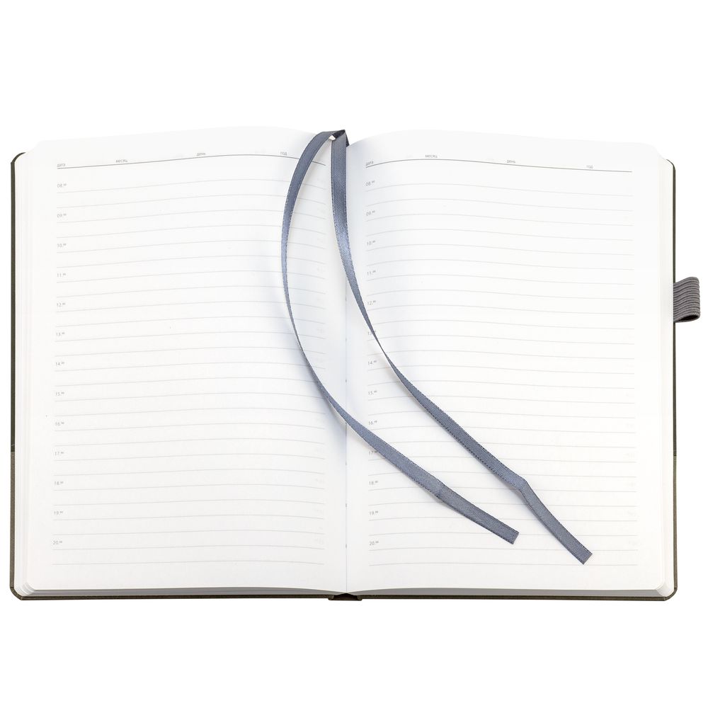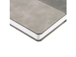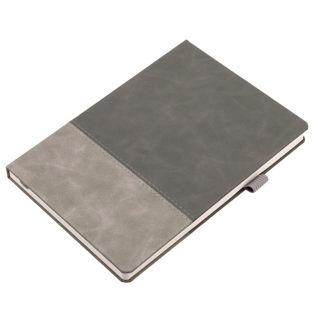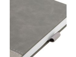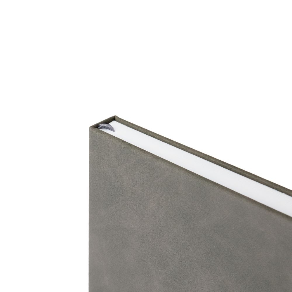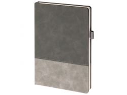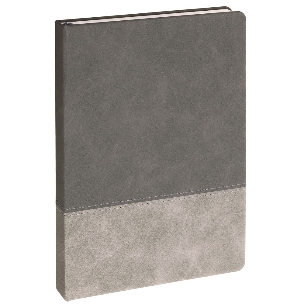 Ежедневник с твердой обложкой, без поролона, со сшивкой материалов Nubuck Touch серый СС, и Nubuck Touch тёмно-серый ЕЕ., дополнен двойным ляссе и петлей-резинкой для ручки.Блок 985, без календарной сетки и информационного блока:Кол-во страниц — 256;Бумага — белая, плотность 70 г/м²;Форзац и нахзац — белые.