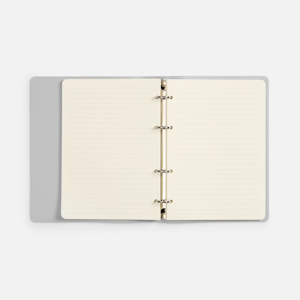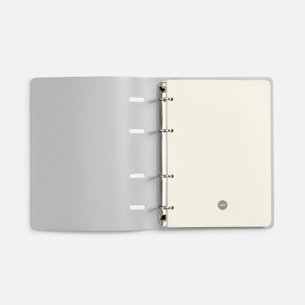 Ежедневник со съемным блоком на кольцах.Блок недатированный, без календарной сетки:Кол-во страниц — 192;Бумага — тонированная, плотность 80 г/м²;Пружина серебристого цвета.