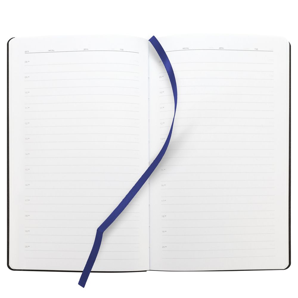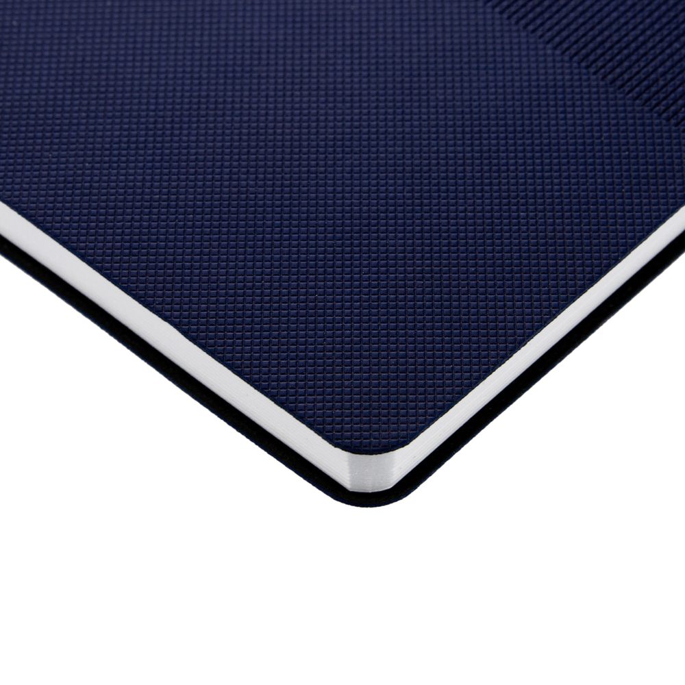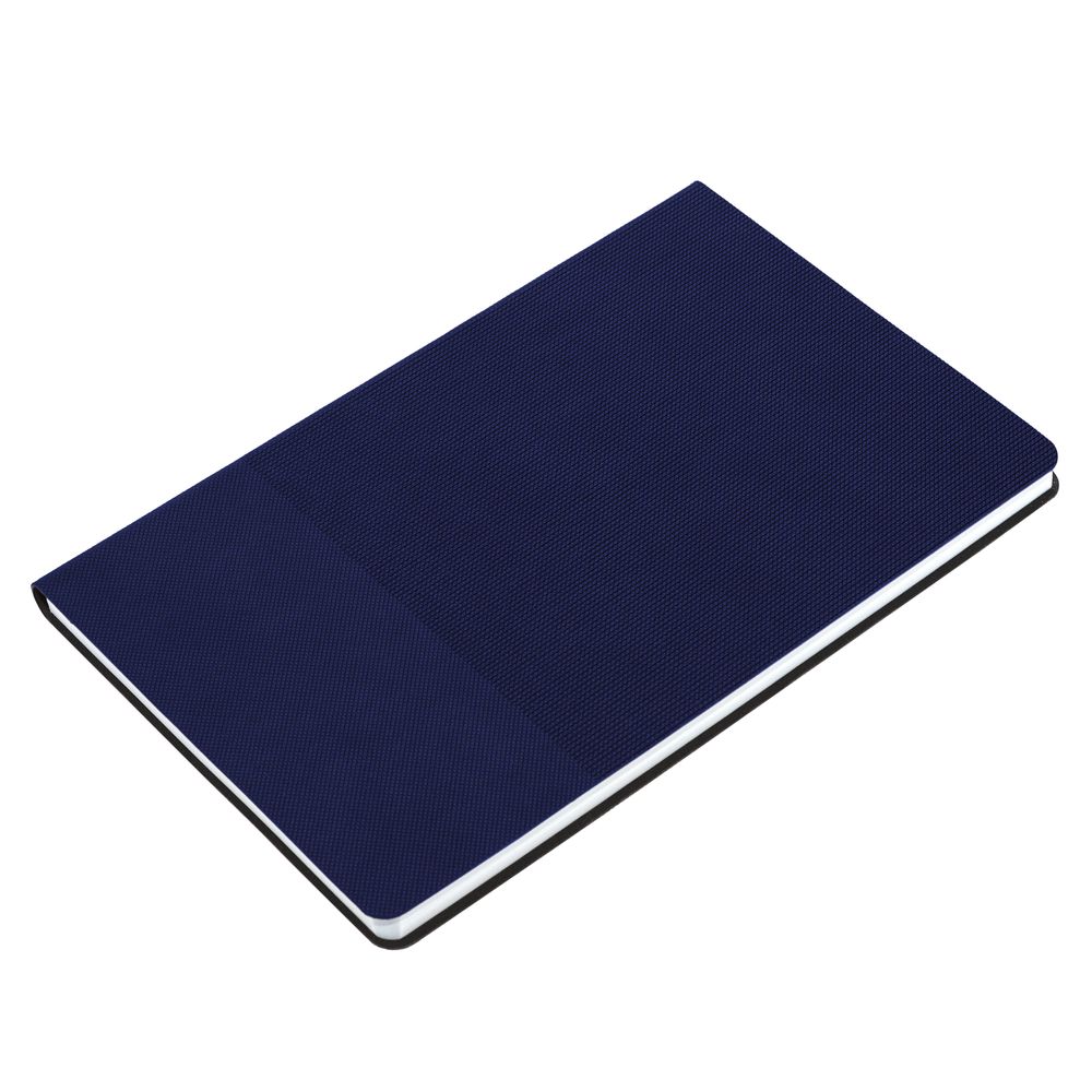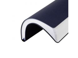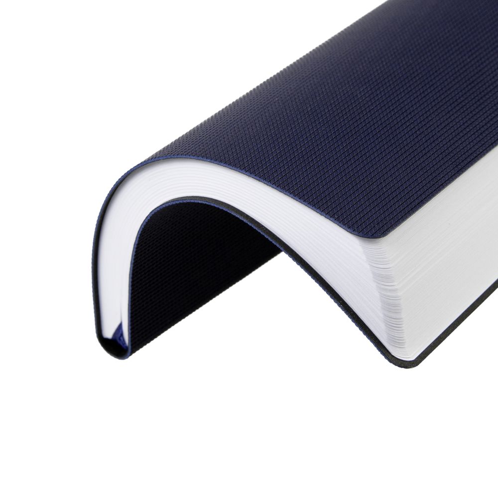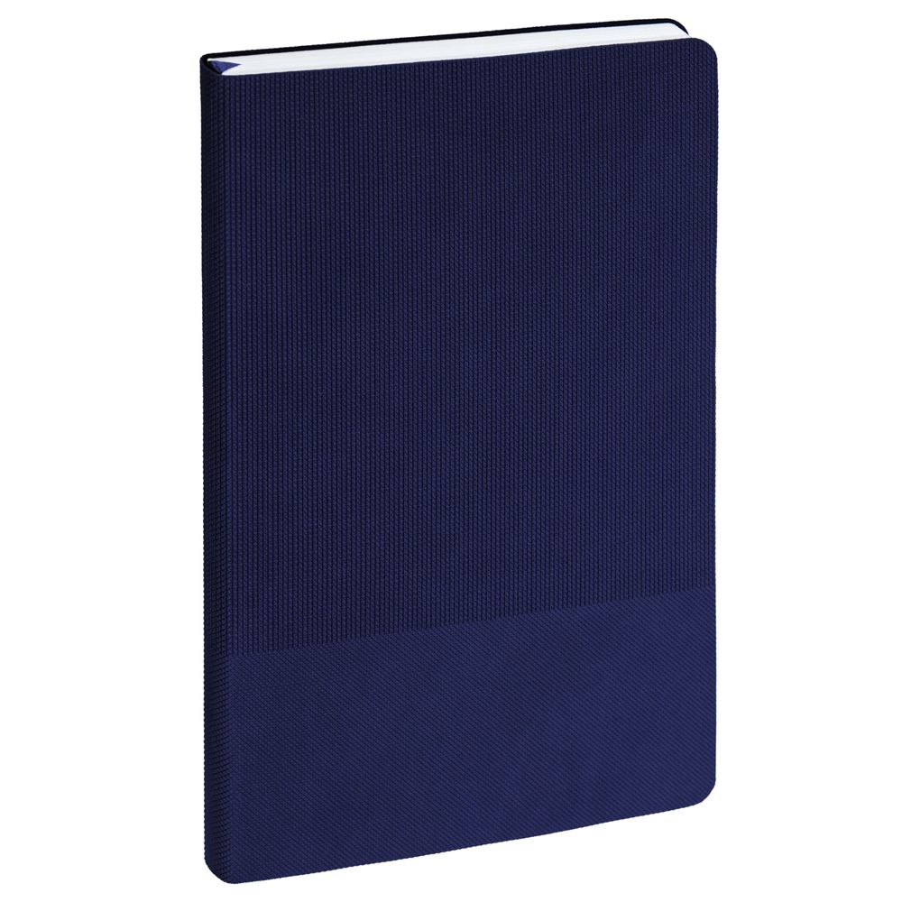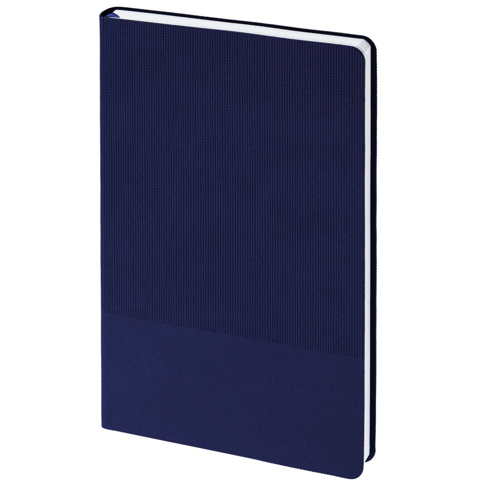 Ежедневник с гибкой обложкой, выполнен из материала Canyon, темно-синий ХХ, дополнен ляссе в цвет обложки. Блинтовое тиснение на обложке создает эффект вязаного полотна.Блок 953, без календарной сетки и информационного блока:Кол-во страниц — 192;Бумага — белая, плотность 70 г/м²;Форзац и нахзац — белые.