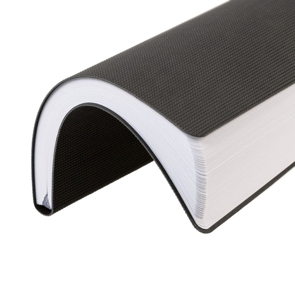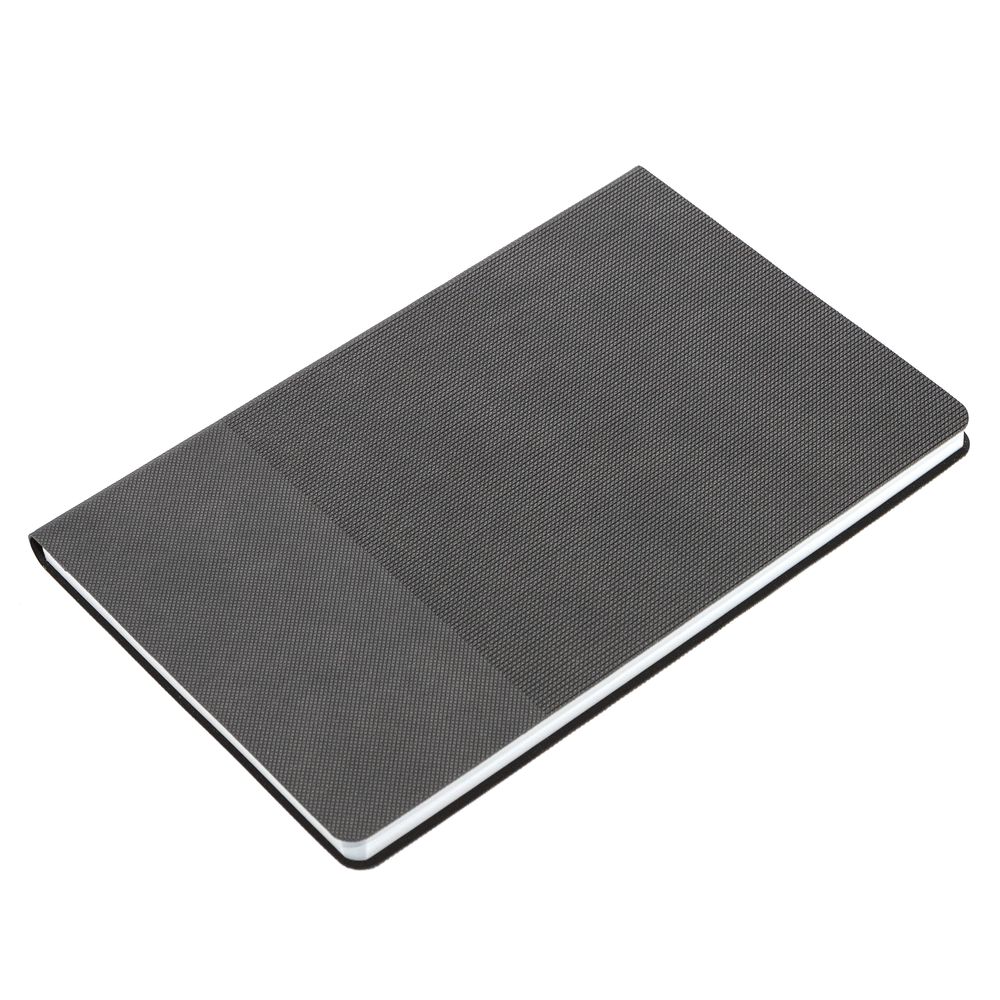 Ежедневник с гибкой обложкой, выполнен из материала Canyon, темно-серый ЕЕ, дополнен ляссе в цвет обложки. Блинтовое тиснение на обложке создает эффект вязаного полотна.Блок 953, без календарной сетки и информационного блока:Кол-во страниц — 192;Бумага — белая, плотность 70 г/м²;Форзац и нахзац — белые.