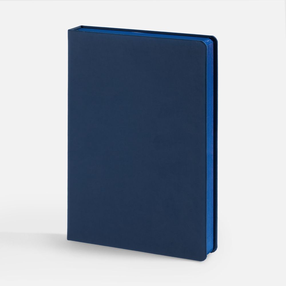 Ежедневник с твердой обложкой и тонированным обрезом, выполнен из материала Soft Touch, синий НН, дополнен ляссе в цвет обложки.Блок 986, без календарной сетки и информационного блока:Кол-во страниц — 256;Бумага — тонированная, плотность 70 г/м²;Форзац и нахзац — синего цвета.