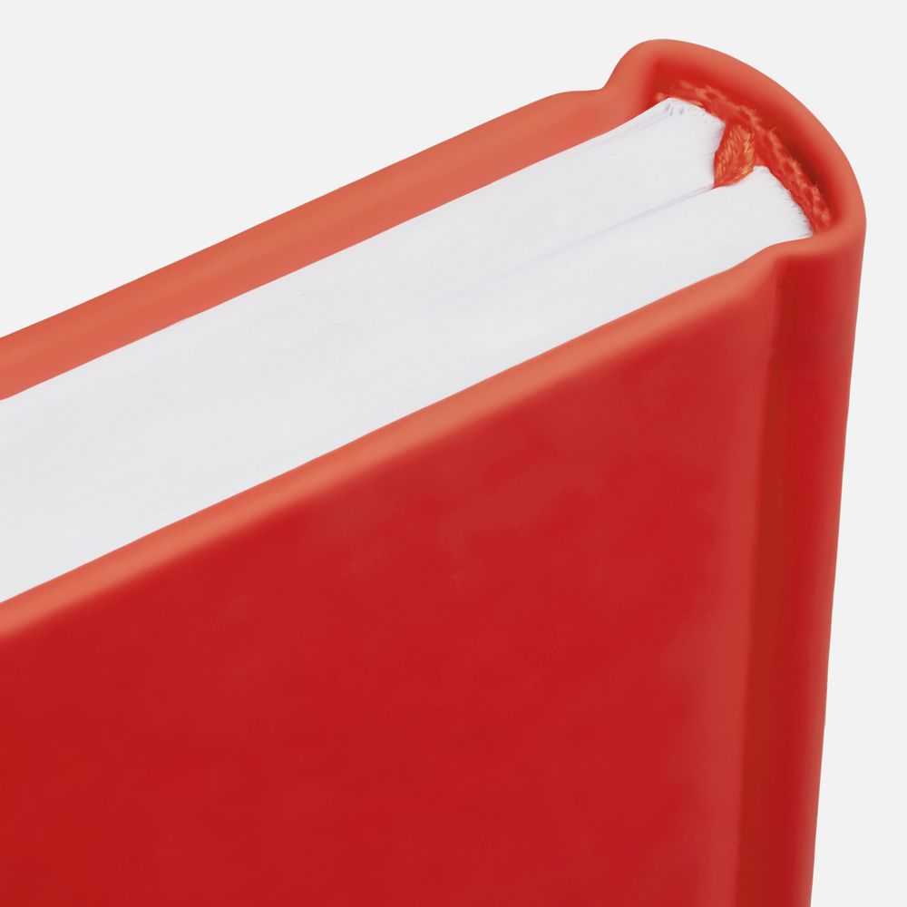Ежедневник с твердой обложкой без поролона, выполнен из материала Soft Touch Ultra, красный РР, дополнен резинкой шириной 1 см, петлей-резинкой для ручки, капталом и ляссе красного цвета.Блок 922, с информационным блоком:Кол-во страниц — 336;Бумага — белая, плотность 70 г/м²;Форзац и нахзац — белого цвета.