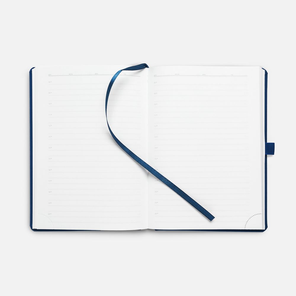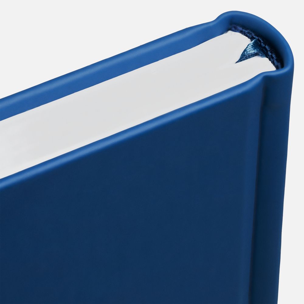 Ежедневник с твердой обложкой без поролона, выполнен из материала Soft Touch Ultra, синий НН, дополнен резинкой шириной 1 см, петлей-резинкой для ручки, капталом и ляссе синего цвета.Блок 922, с информационным блоком:Кол-во страниц — 336;Бумага — белая, плотность 70 г/м²;Форзац и нахзац — белого цвета.