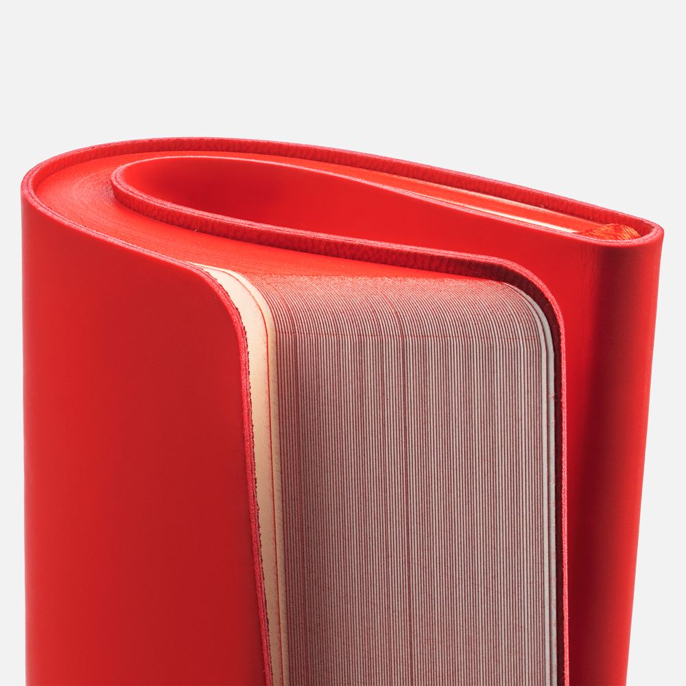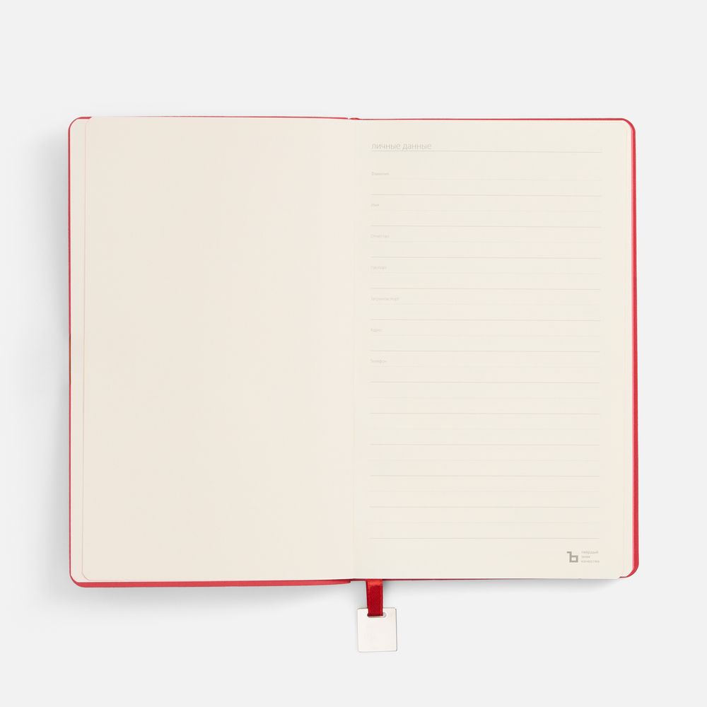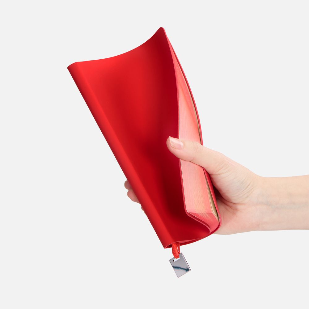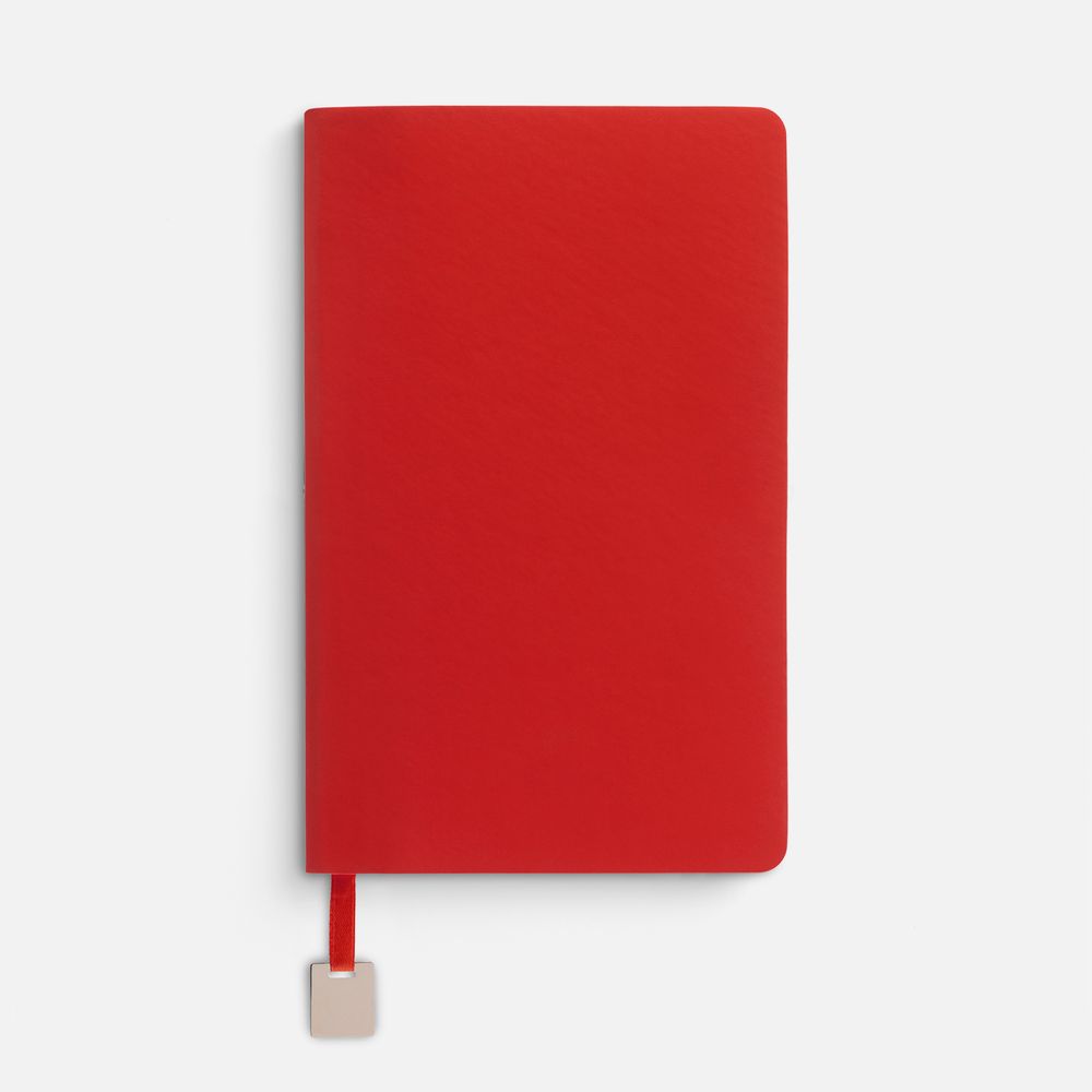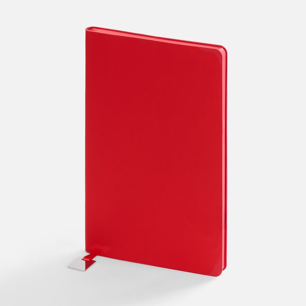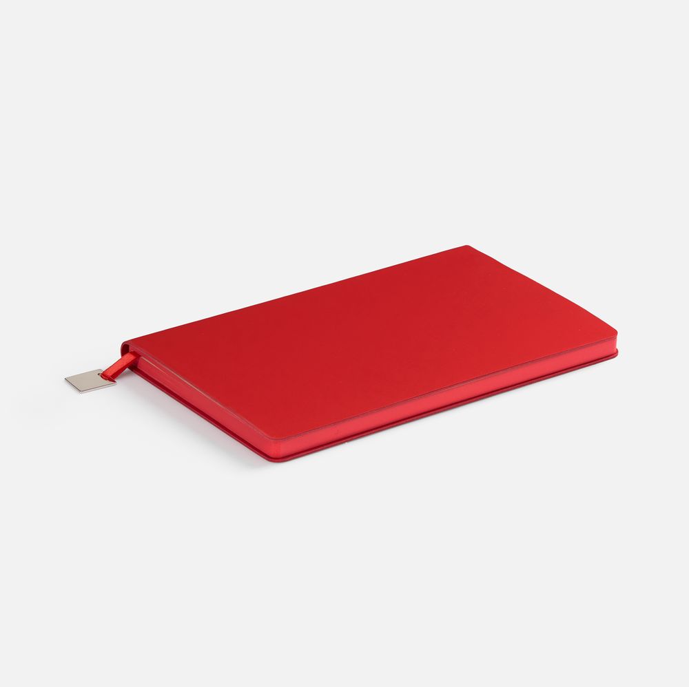 Ежедневник с гибкой обложкой, выполнен из материалов Soft Touch Ultra, красный РР, и Latte, красный (внутренняя часть обложки), дополнен ляссе в цвет обложки с металлическим шильдиком.Блок без календарной сетки и информационного блока:Кол-во страниц — 192;Бумага — тонированная, плотность 80 г/м²;Обрез — красный;Форзац и нахзац — тонированные.