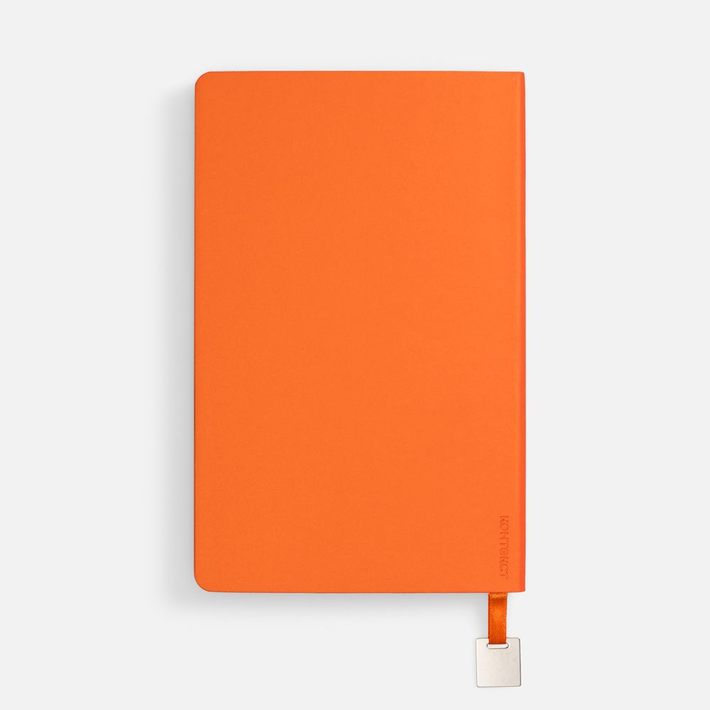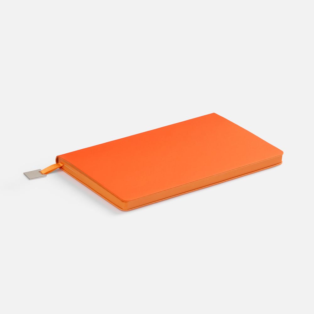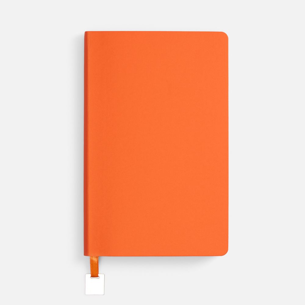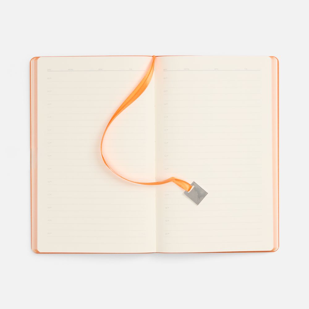Ежедневник с гибкой обложкой, выполнен из материалов Soft Touch Pearl, оранжевый ОО, и Latte, оранжевый (внутренняя часть обложки), дополнен ляссе в цвет обложки с металлическим шильдиком.Блок без календарной сетки и информационного блока:Кол-во страниц — 192;Бумага — тонированная, плотность 80 г/м²;Обрез — оранжевый;Форзац и нахзац — тонированные.