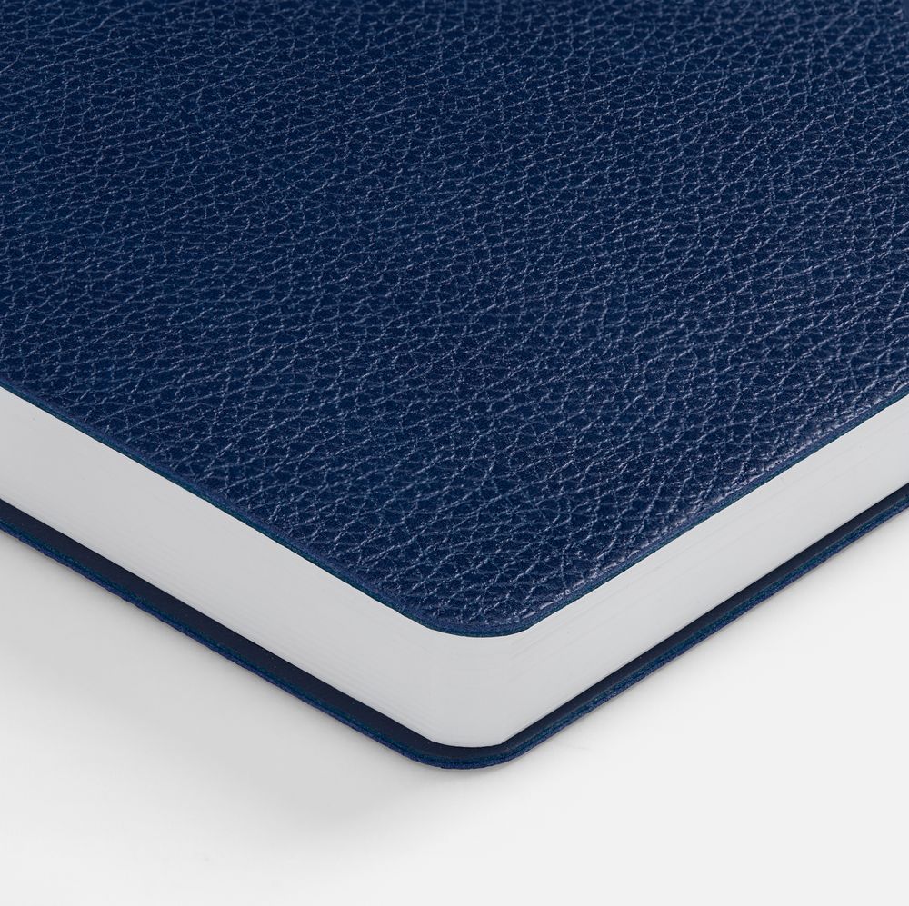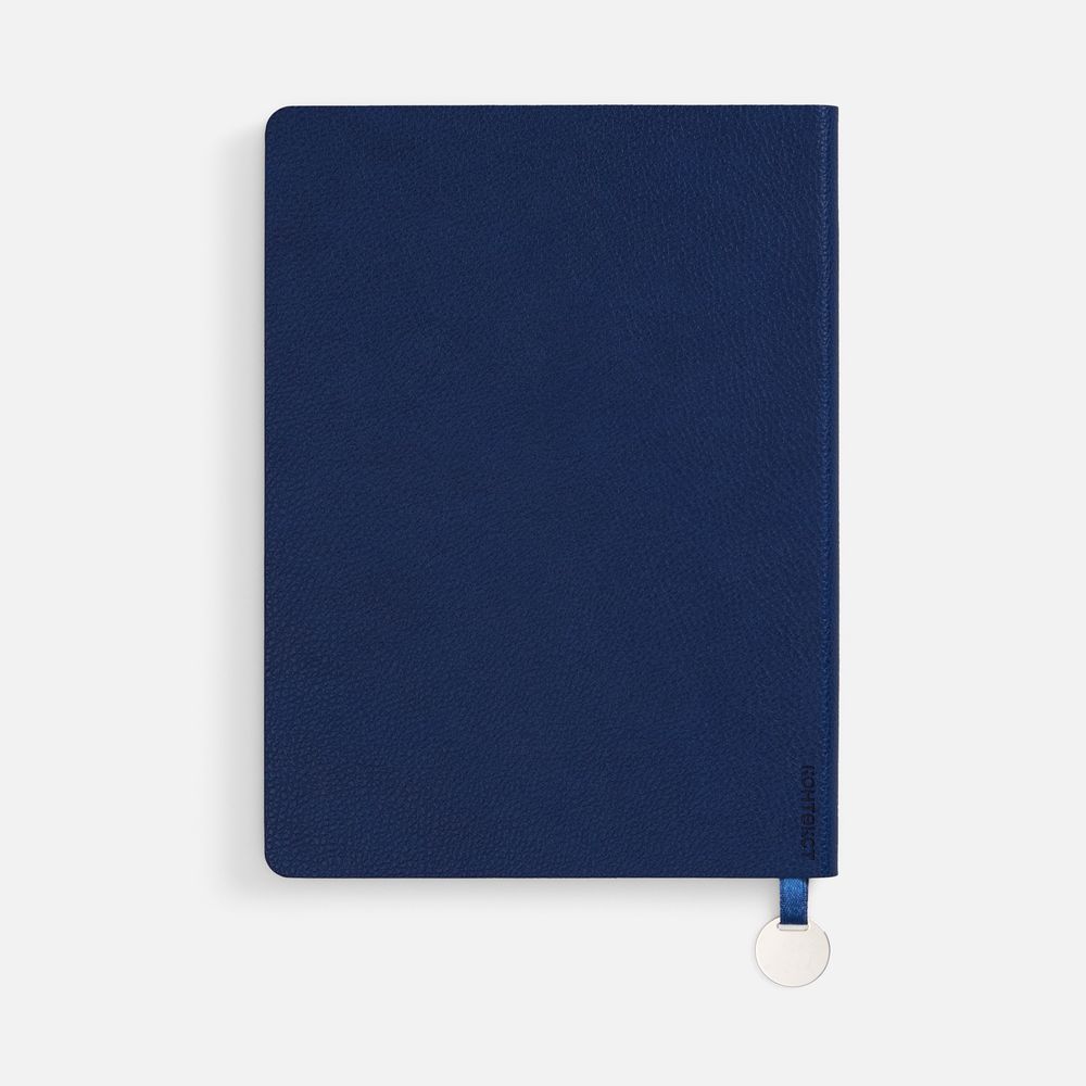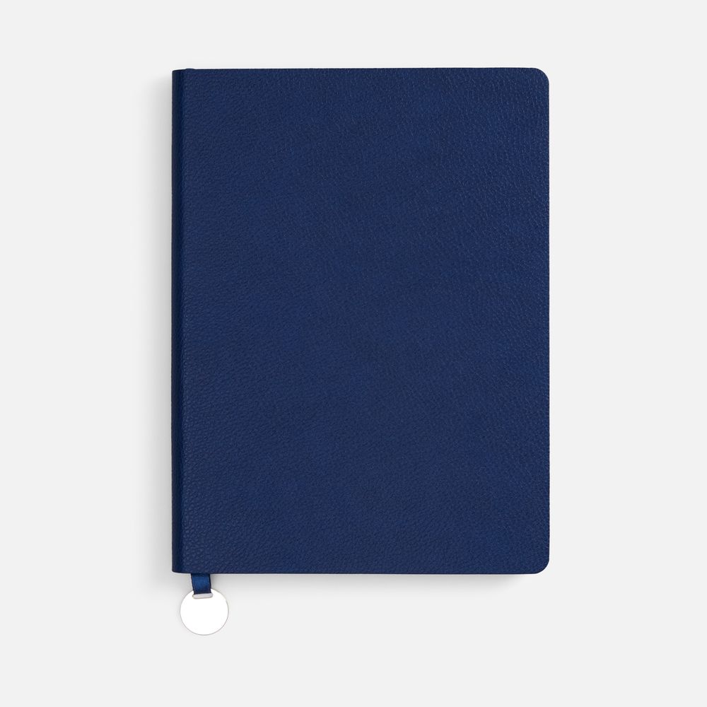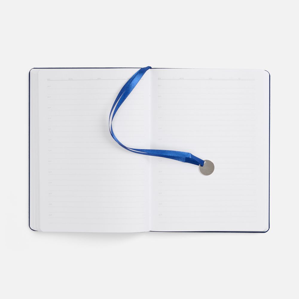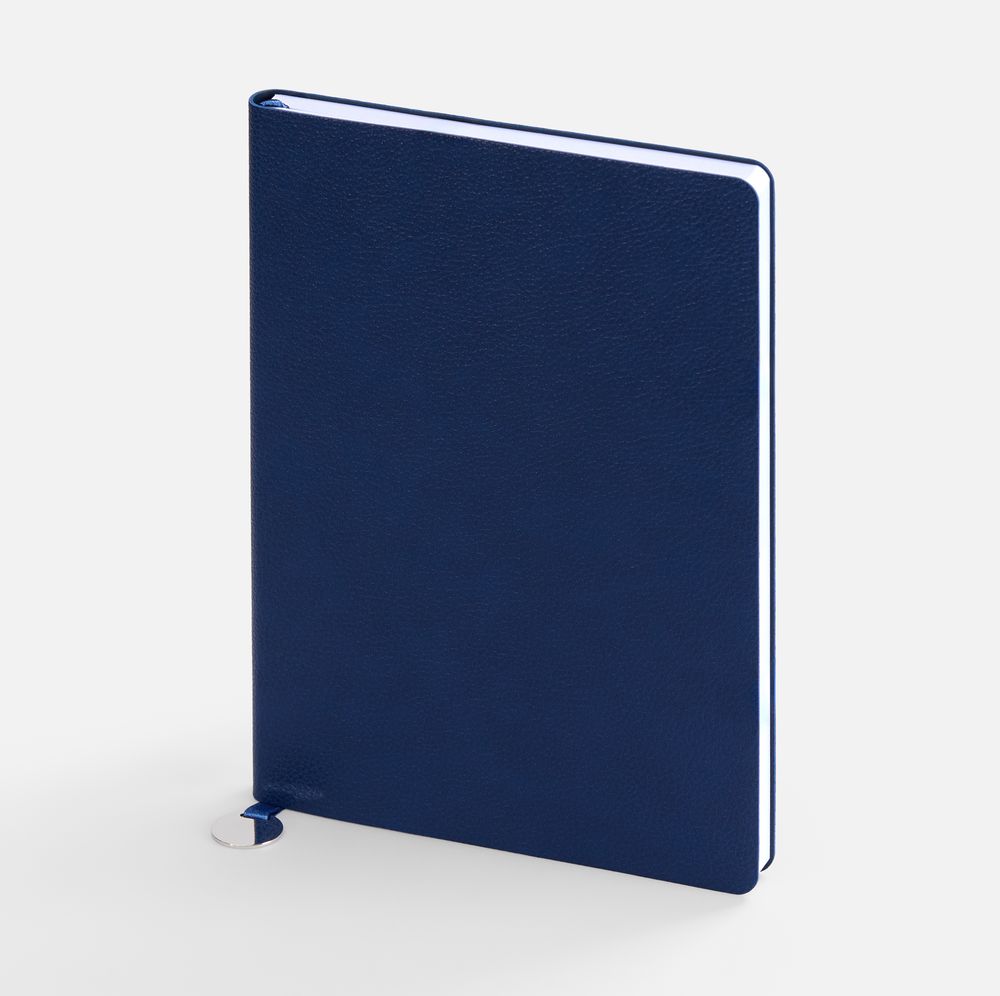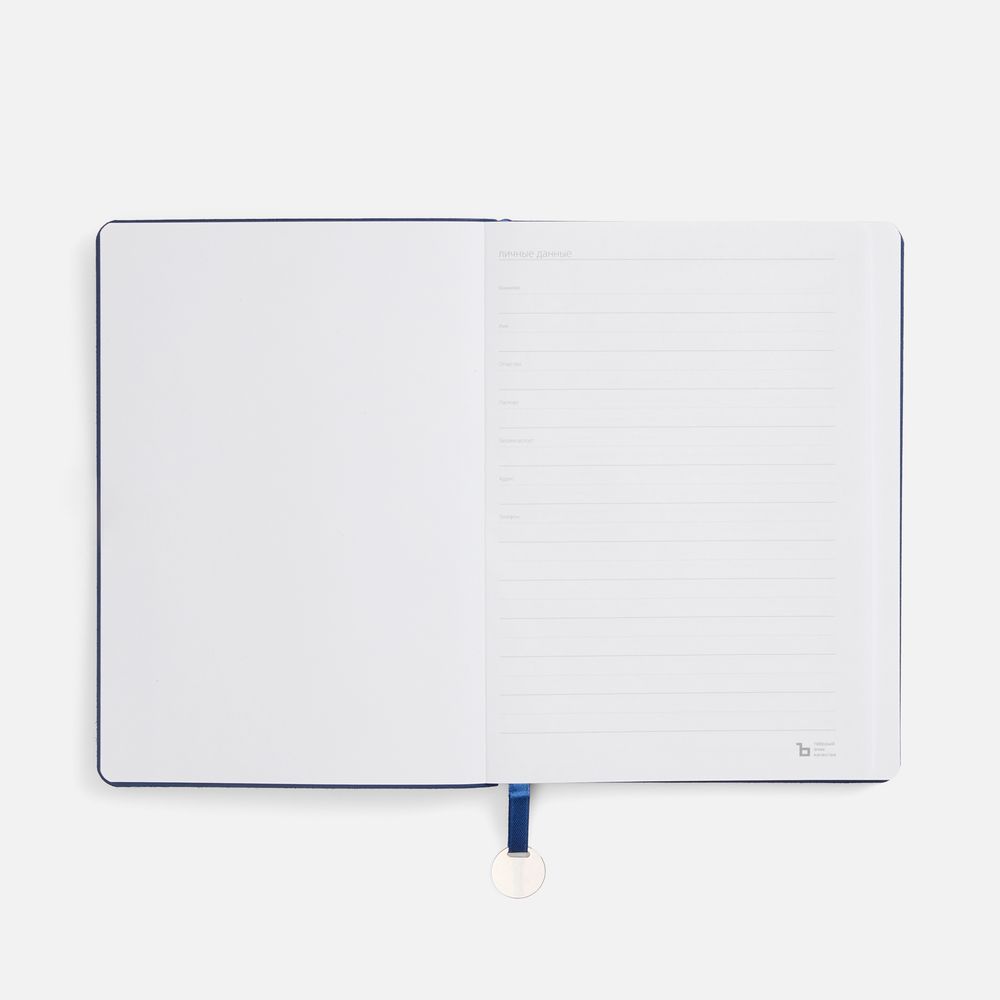 Ежедневник с гибкой обложкой, выполнен из материал La Fite, синий НН, дополнен ляссе в цвет обложки с металлическим шильдом.Блок 985, без календарной сетки и информационного блока:Кол-во страниц — 256;Бумага — белая, плотность 70 г/м²;Форзац и нахзац — белые.