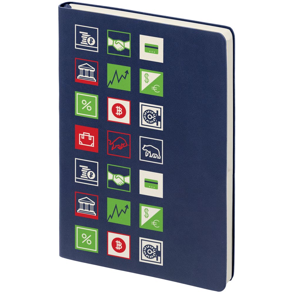 Работа в финансовой сфере — это целый калейдоскоп событий и важных, трудоемких задач. Для достижения высоких результатов требуется все держать под контролем, поэтому важно всегда иметь под рукой самое необходимое. Ежедневник Industry — идеальное решение для корпоративного подарка работникам этой сферы деятельности.В каждой части общего рисунка изображены главные финансовые символы.Ежедневник с гибкой обложкой, выполнен из материала Latte, темно-синий, дополнен ляссе в цвет обложки.Блок недатированный, без календарной сетки:Кол-во страниц — 256;Бумага — белая, плотность 70 г/м²;Форзац и нахзац — белого цвета.
