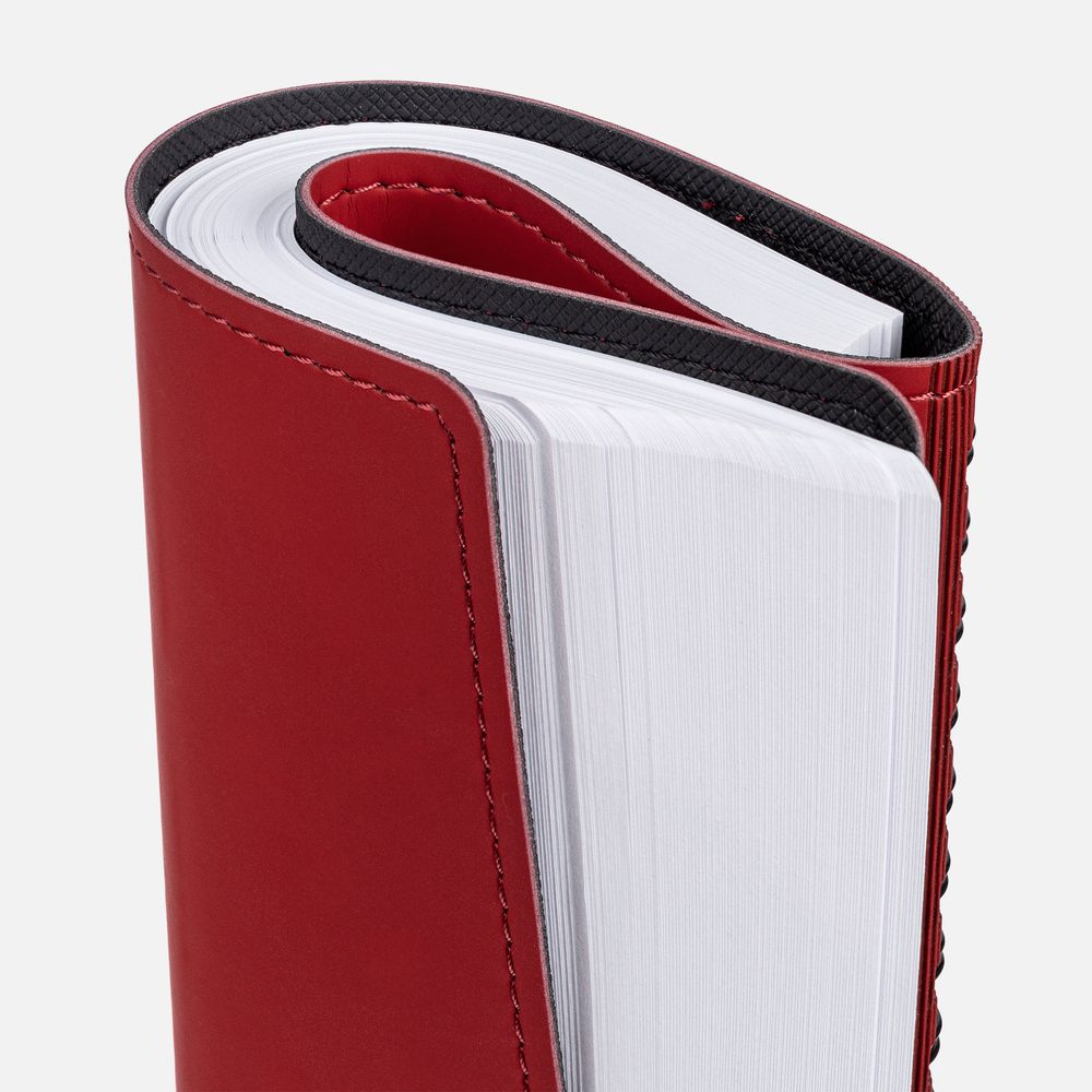 Ежедневник с гибкой обложкой, выполнен из материалов Soft Touch, красный РР и Nice Touch, черный АА.Блок 206, без календарной сетки и информационного блока: Кол-во страниц — 256;Бумага — белая, плотность 70 г/м².