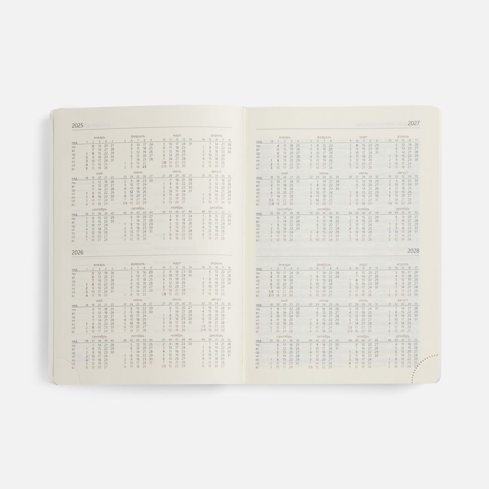 Ежедневник с твердой обложкой c поролоном, выполнен из материала Nubuck, морской волны, дополнен капталом и ляссе бирюзового цвета. Застежка — хлястик на магните.Блок 988, с информационным блоком и календарной сеткой:Кол-во страниц — 336;Бумага — тонированная, плотность 70 г/м²;Форзац и нахзац — тонированные.