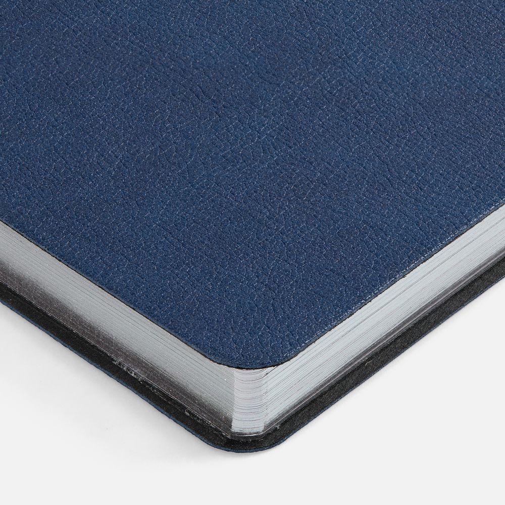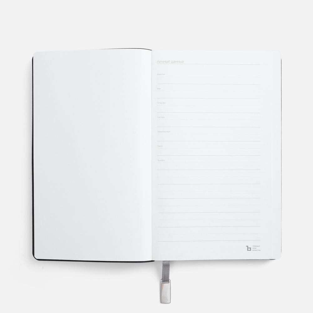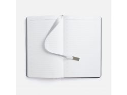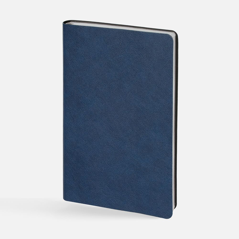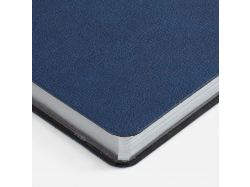 Ежедневник с гибкой обложкой, выполнен из материала Petrus, синий НН, дополнен серым ляссе с металлическим шильдиком.Блок 951, без календарной сетки и информационного блока:Кол-во страниц — 256;Бумага — белая, плотность 70 г/м²;Форзац и нахзац — белыеОбрез блока — серебристый.
