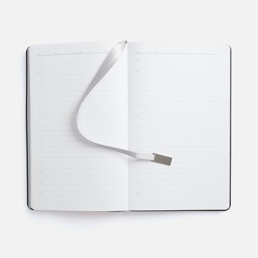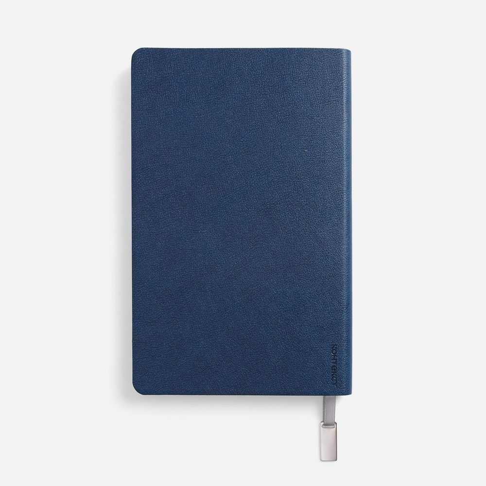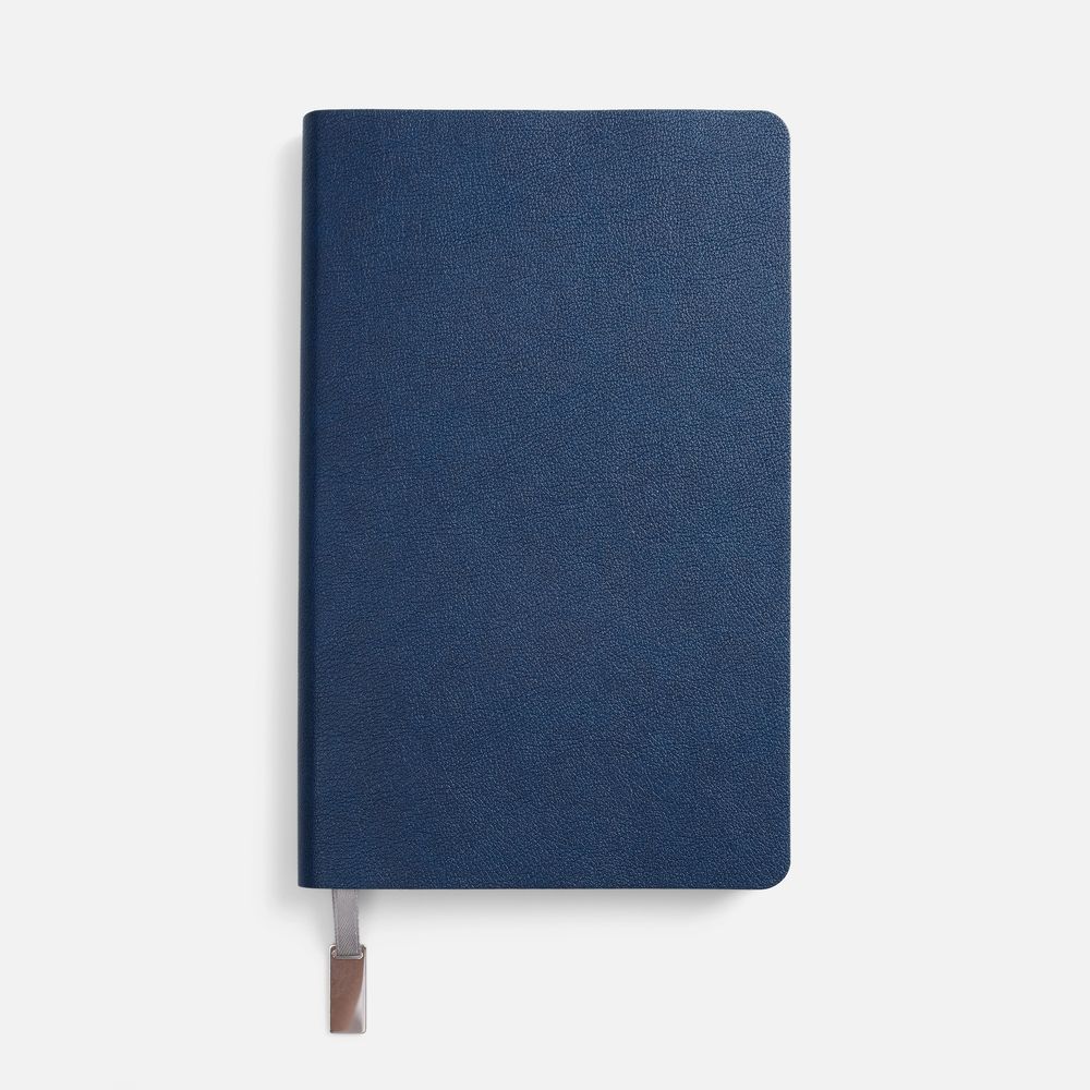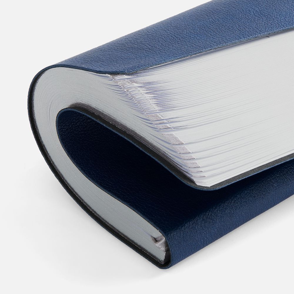 Ежедневник с гибкой обложкой, выполнен из материала Petrus, синий НН, дополнен серым ляссе с металлическим шильдиком.Блок 951, без календарной сетки и информационного блока:Кол-во страниц — 256;Бумага — белая, плотность 70 г/м²;Форзац и нахзац — белыеОбрез блока — серебристый.