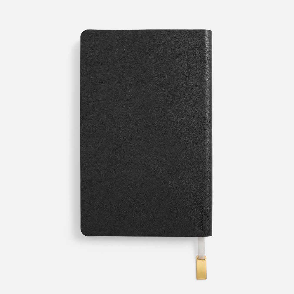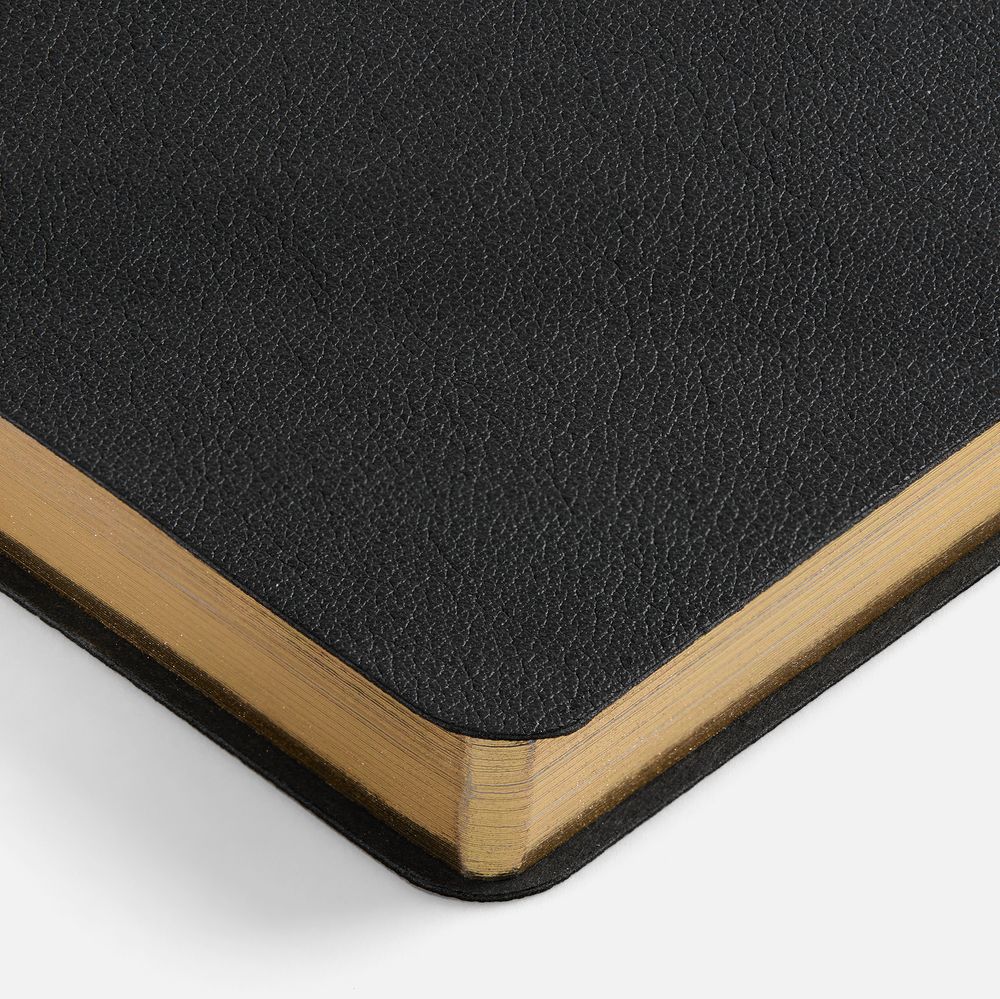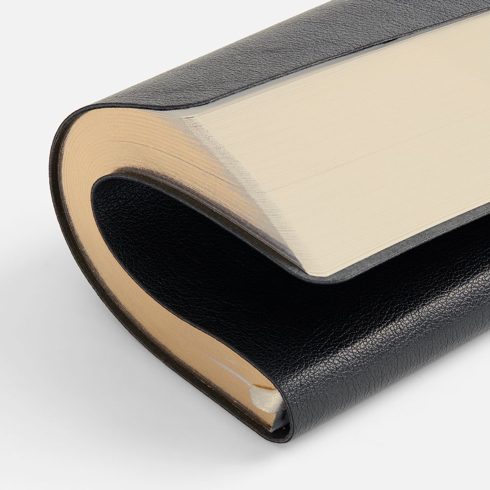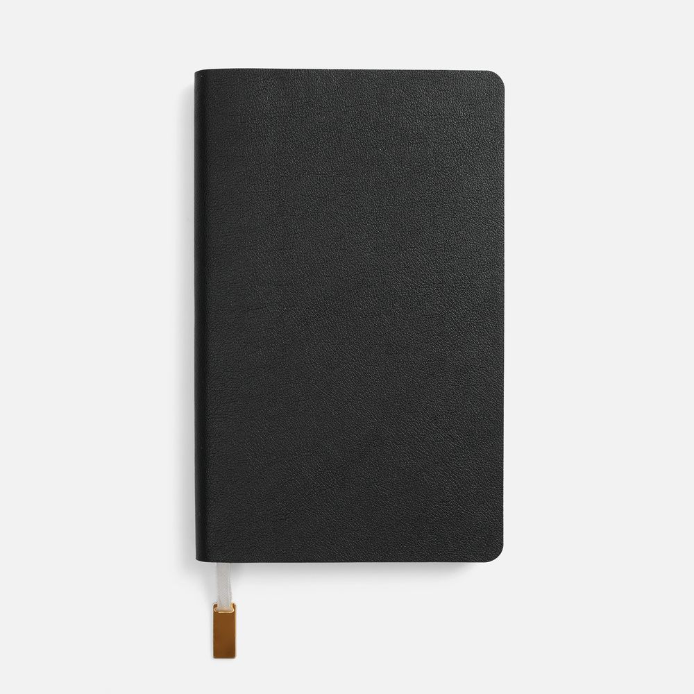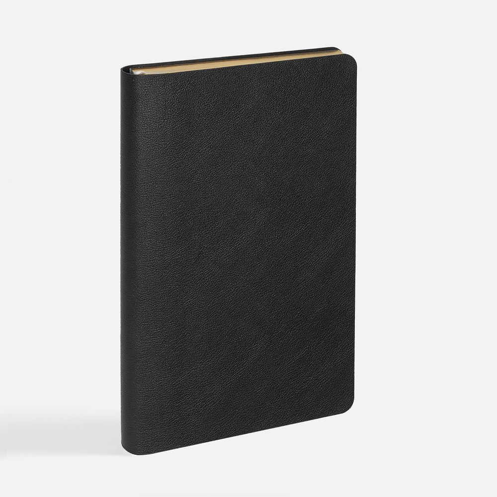 Ежедневник с гибкой обложкой, выполнен из материала Petrus, черный АА, дополнен серым ляссе с металлическим золотистым шильдиком.Блок 951, без календарной сетки и информационного блока:Кол-во страниц — 256;Бумага — белая, плотность 70 г/м²;Форзац и нахзац — белыеОбрез блока —  золотистый.