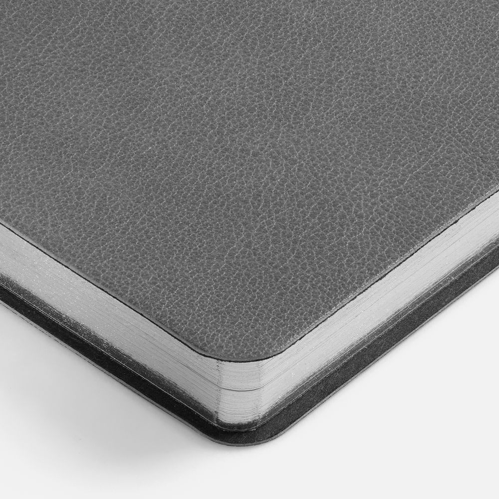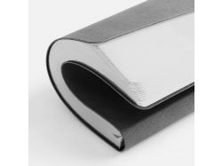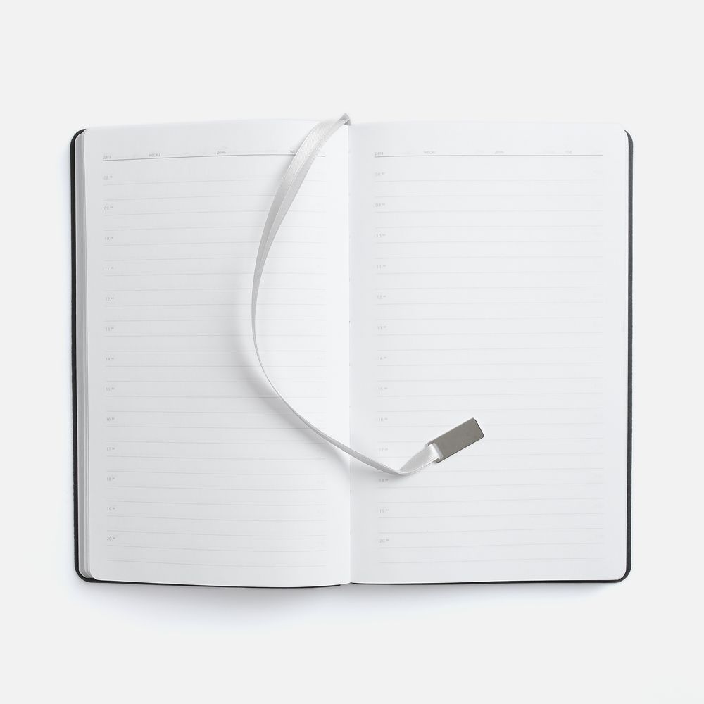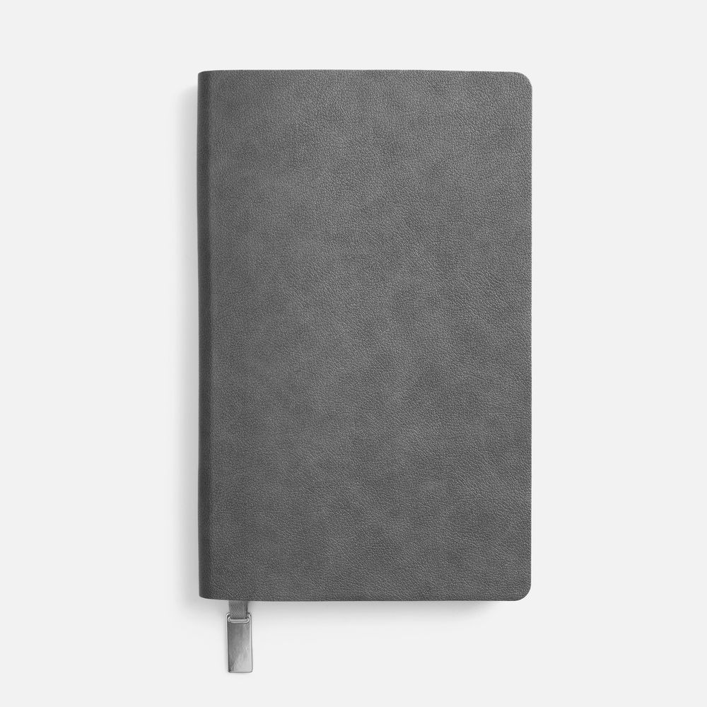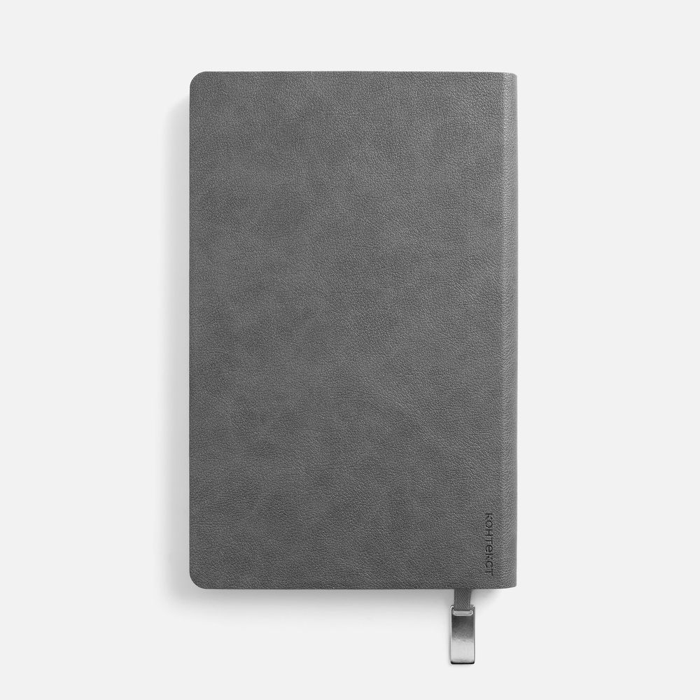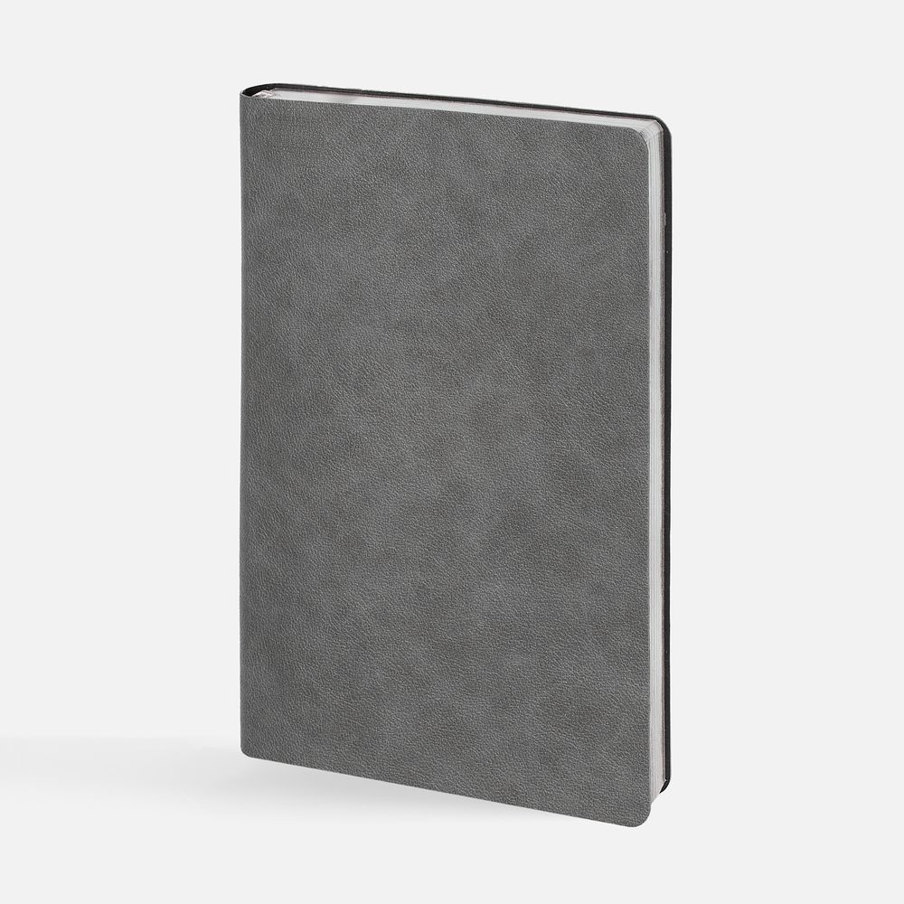 Ежедневник с гибкой обложкой, выполнен из материала Petrus, серый СС, дополнен серым ляссе с металлическим шильдиком.Блок 951, без календарной сетки и информационного блока:Кол-во страниц — 256;Бумага — белая, плотность 70 г/м²;Форзац и нахзац — белыеОбрез блока — серебристый.