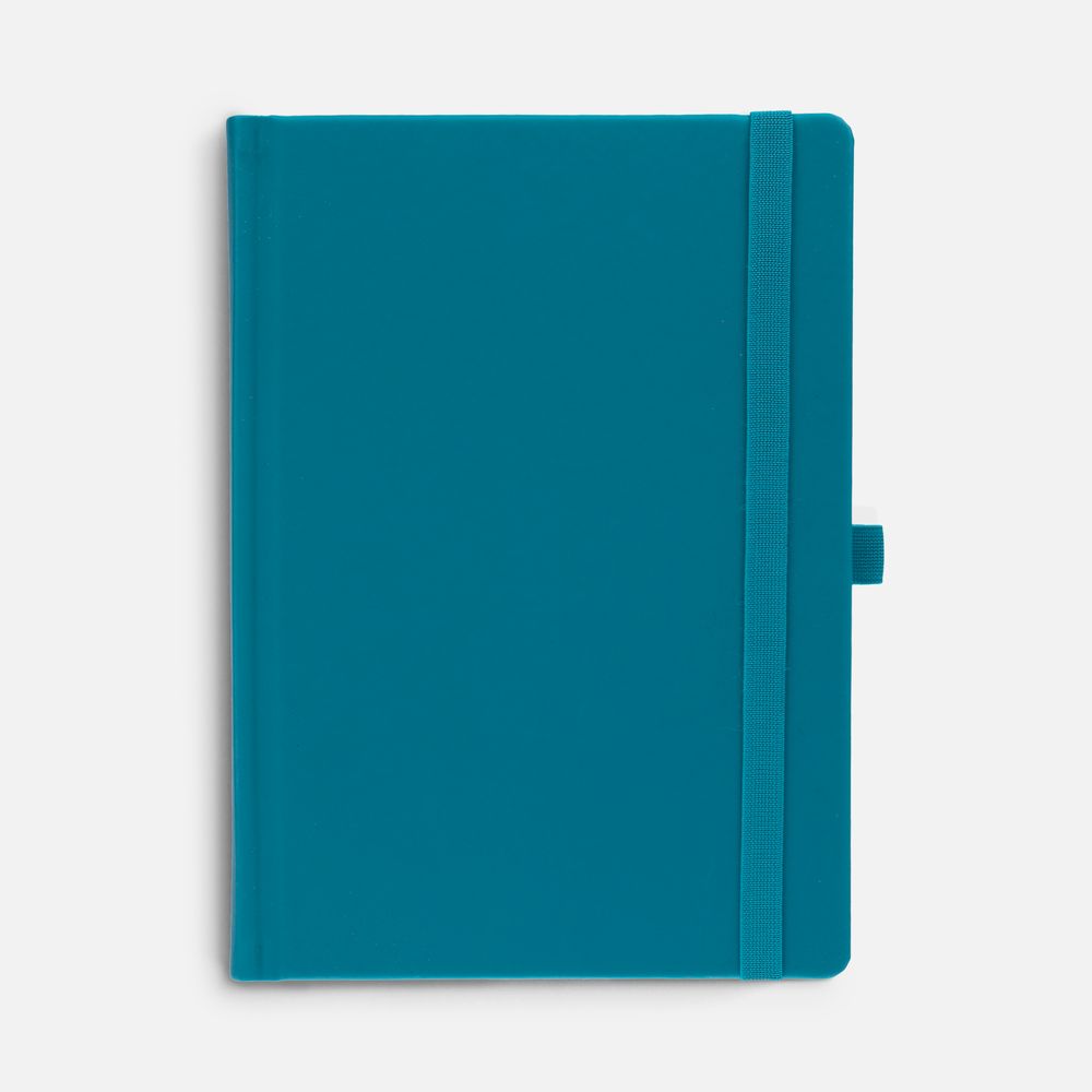 Ежедневник с твердой обложкой без поролона, выполнен из материала Soft Touch, цвет морской волны II, дополнен резинкой шириной 1 см, петлей-резинкой для ручки, капталом и ляссе темно-бирюзового цвета.Блок 922, с информационным блоком:Кол-во страниц — 336;Бумага — белая, плотность 70 г/м²;Форзац и нахзац — белого цвета.