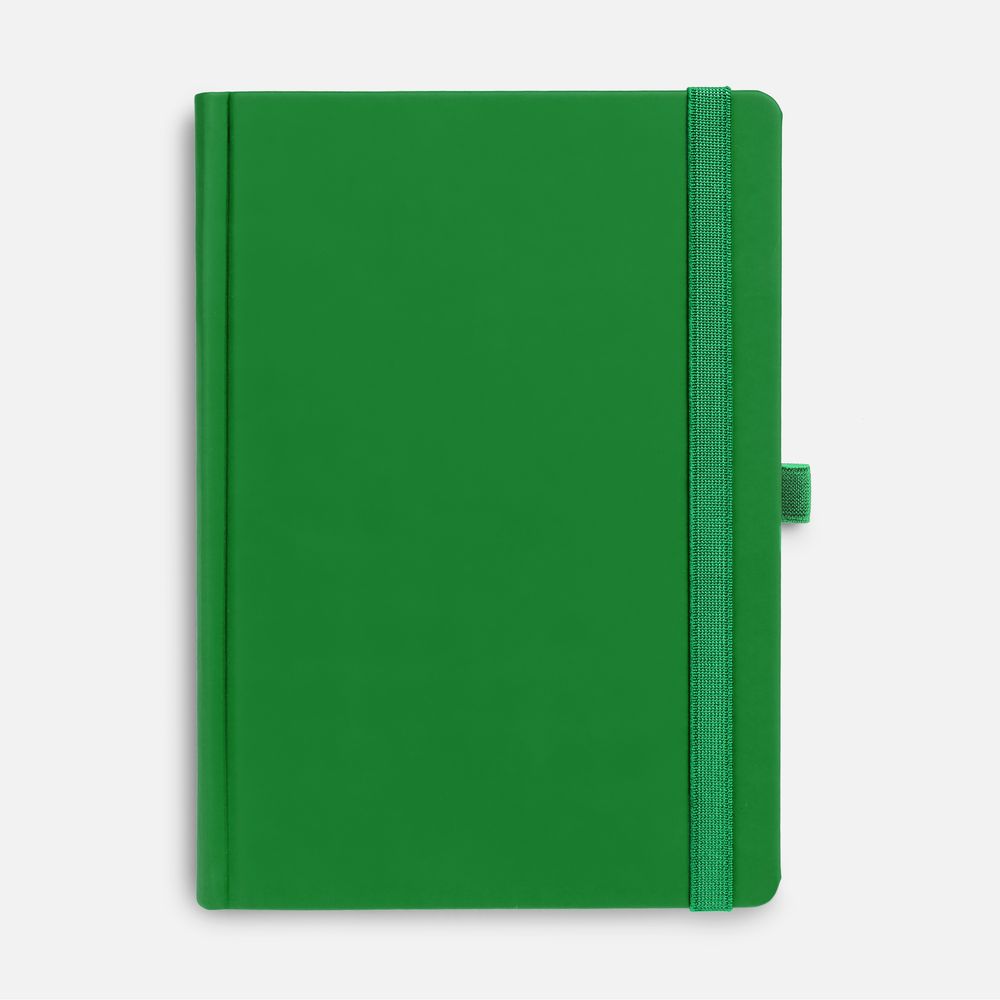 Ежедневник с твердой обложкой без поролона, выполнен из материала Soft Touch Ultra, зеленый FF, дополнен резинкой шириной 1 см, петлей-резинкой для ручки, капталом и ляссе ярко-зеленого цвета.Блок 922, с информационным блоком:Кол-во страниц — 336;Бумага — белая, плотность 70 г/м²;Форзац и нахзац — белого цвета.