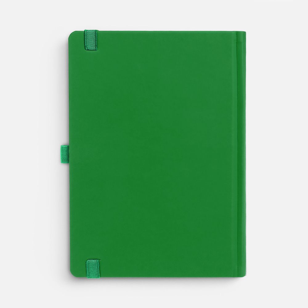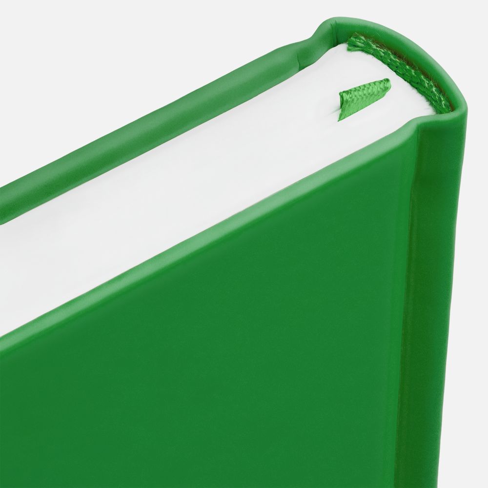 Ежедневник с твердой обложкой без поролона, выполнен из материала Soft Touch Ultra, зеленый FF, дополнен резинкой шириной 1 см, петлей-резинкой для ручки, капталом и ляссе ярко-зеленого цвета.Блок 922, с информационным блоком:Кол-во страниц — 336;Бумага — белая, плотность 70 г/м²;Форзац и нахзац — белого цвета.