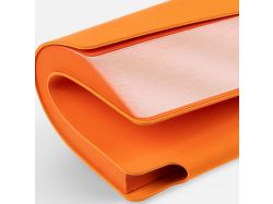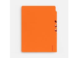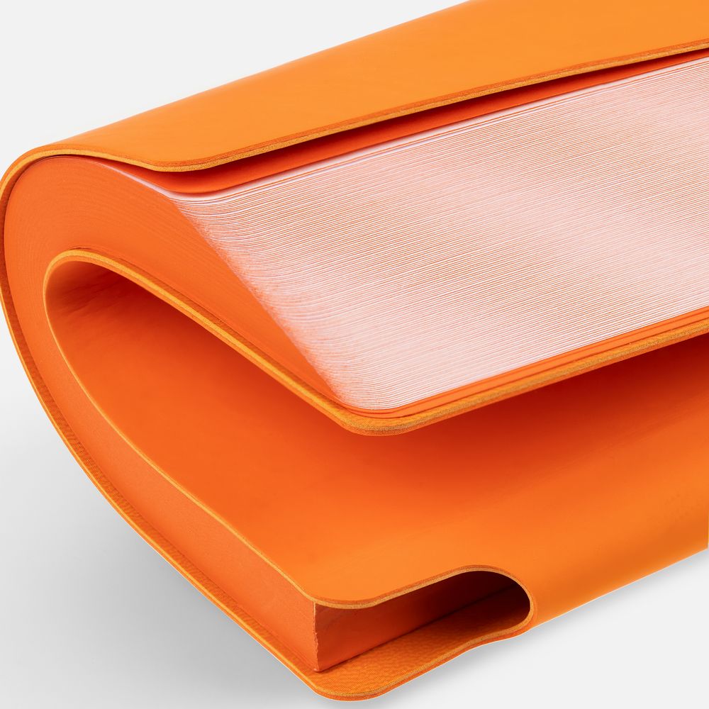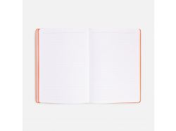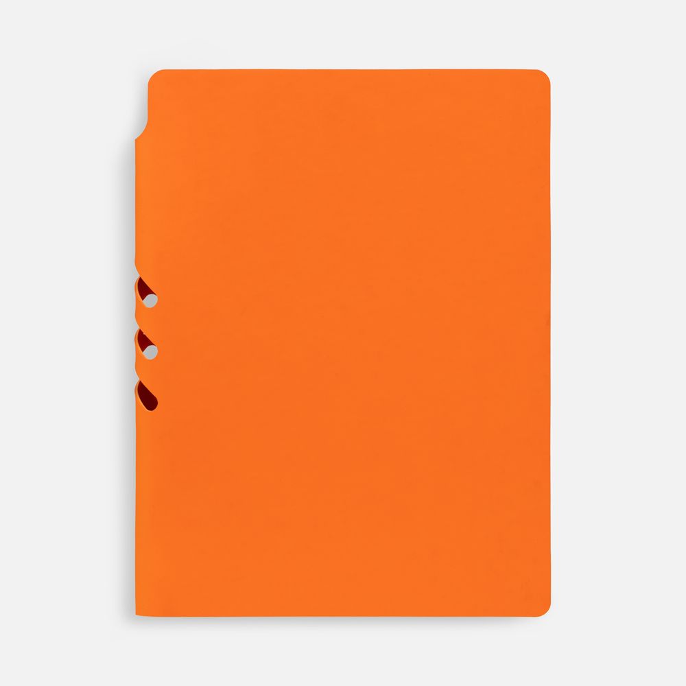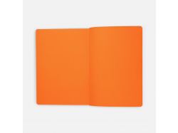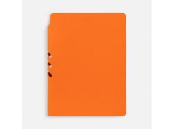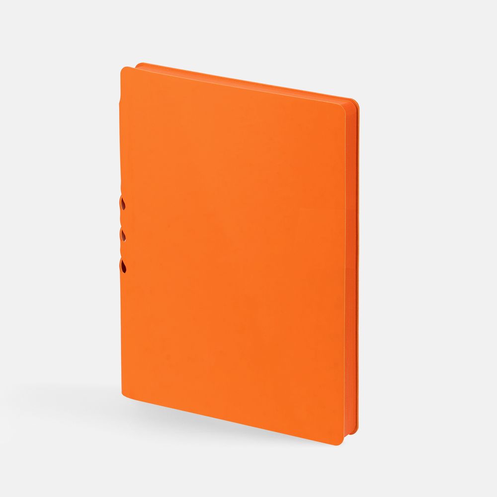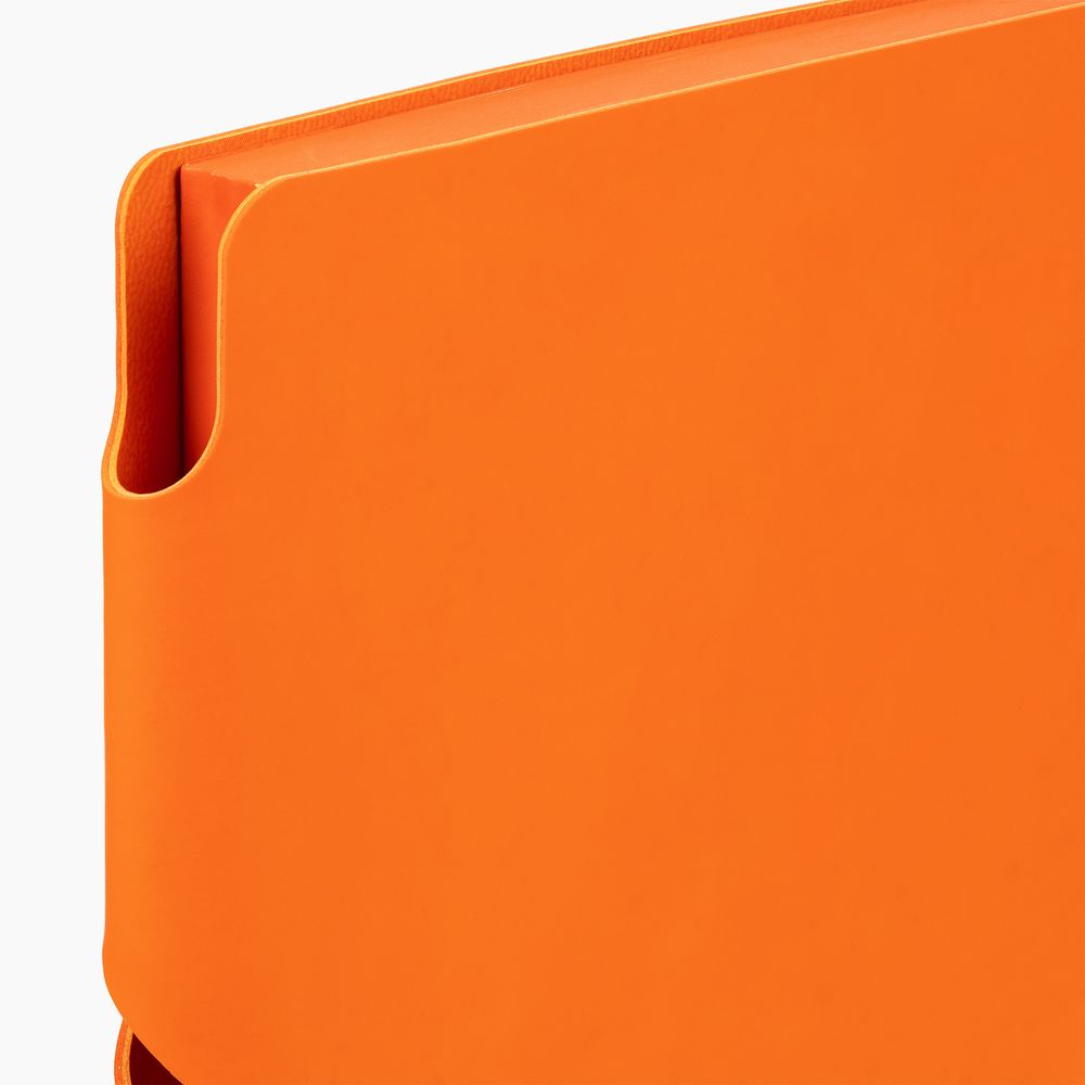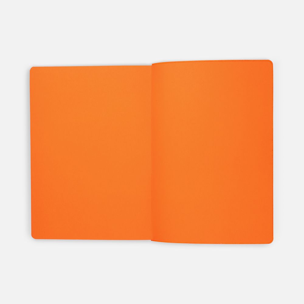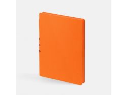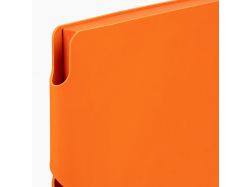 Гибкая обложка выполнена из материала Soft Touch, оранжевый OO и Latte, оранжевый OO (внутренняя часть обложки). Внутри корешка — специальное место для крепления ручки размером до 15х1 см.Блок 985, без информационного блока:Кол-во страниц — 256;Бумага — белая, плотность 70 г/м²;Обрез блока — оранжевый;Форзац и нахзац — оранжевые.