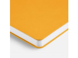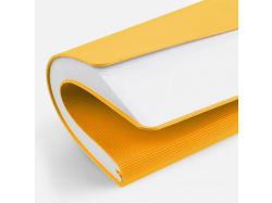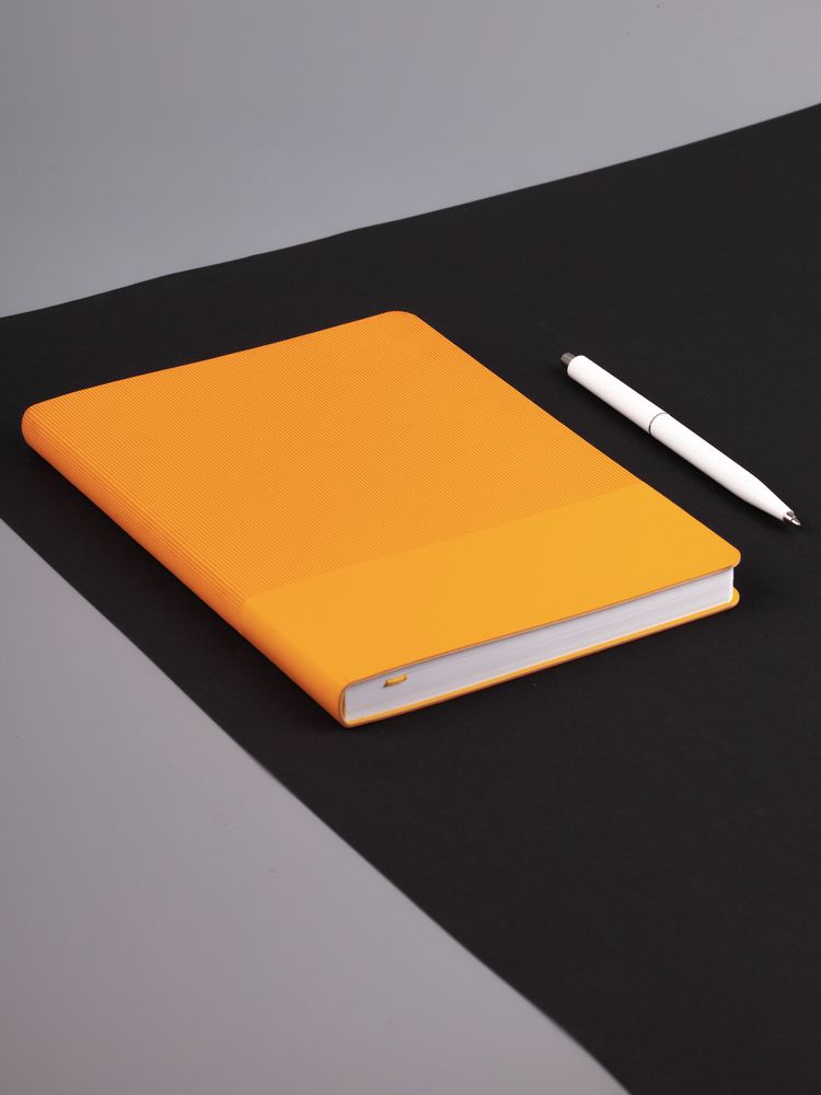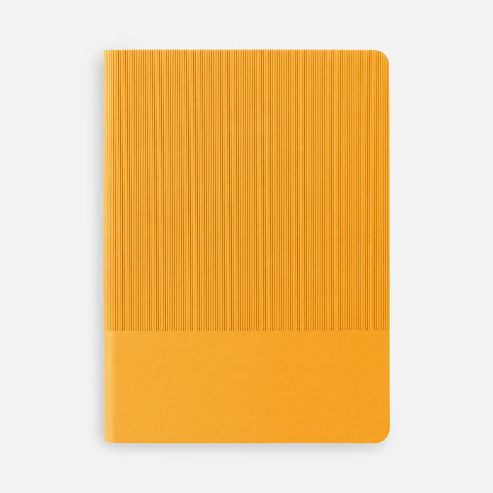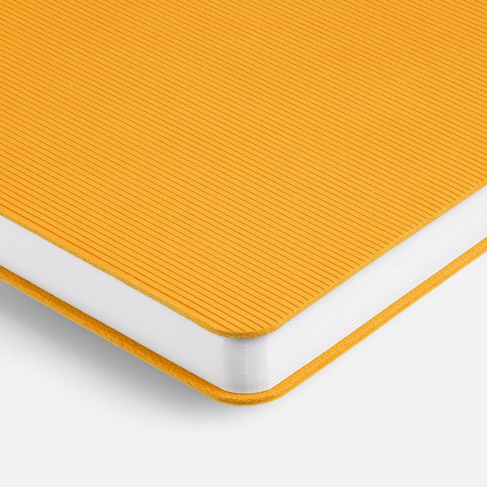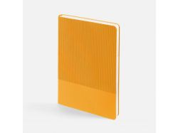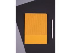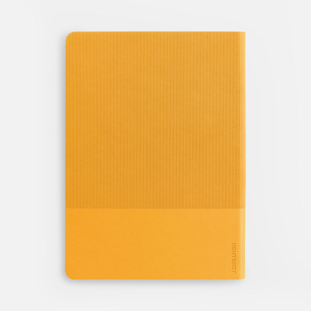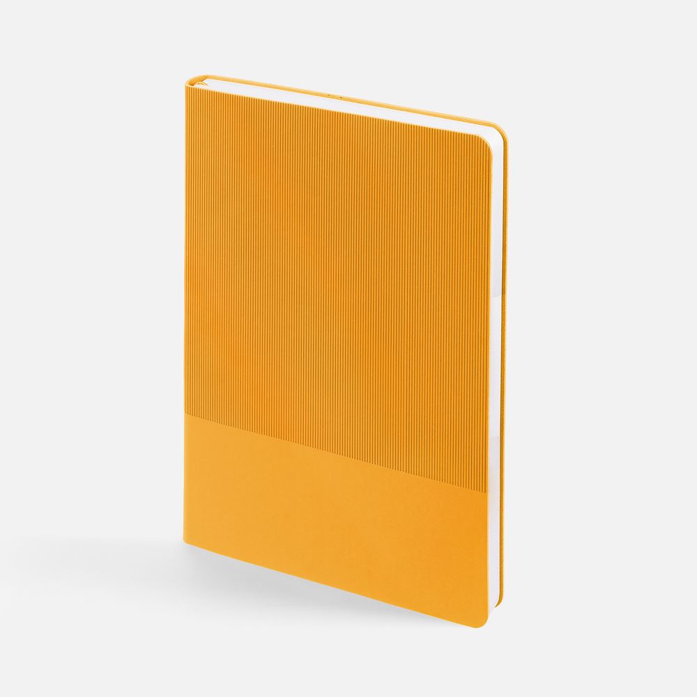 Фактурное тиснение на обложке освежает вид классического ежедневника, а также дополнительно выделяет пространство внизу, словно специально оставленное для нанесения логотипа.Ежедневник с гибкой обложкой выполнен из материала Soft Touch, желтый KK и Latte, желтый (внутренний материал); дополнен ляссе желтого цвета и фактурным тиснением обложки.Блок 985, без информационного блока:Кол-во страниц — 256;Бумага — белая, плотность 70 г/м²;Форзац и нахзац — белые.