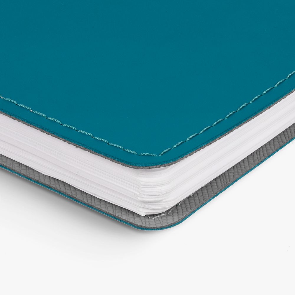 Ежедневник с гибкой обложкой, выполнен из материалов Soft Touch, цвет морской волны II и Nice touch, серый СС.Блок 206, без календарной сетки и информационного блока: Кол-во страниц — 256;Бумага — белая, плотность 70 г/м².