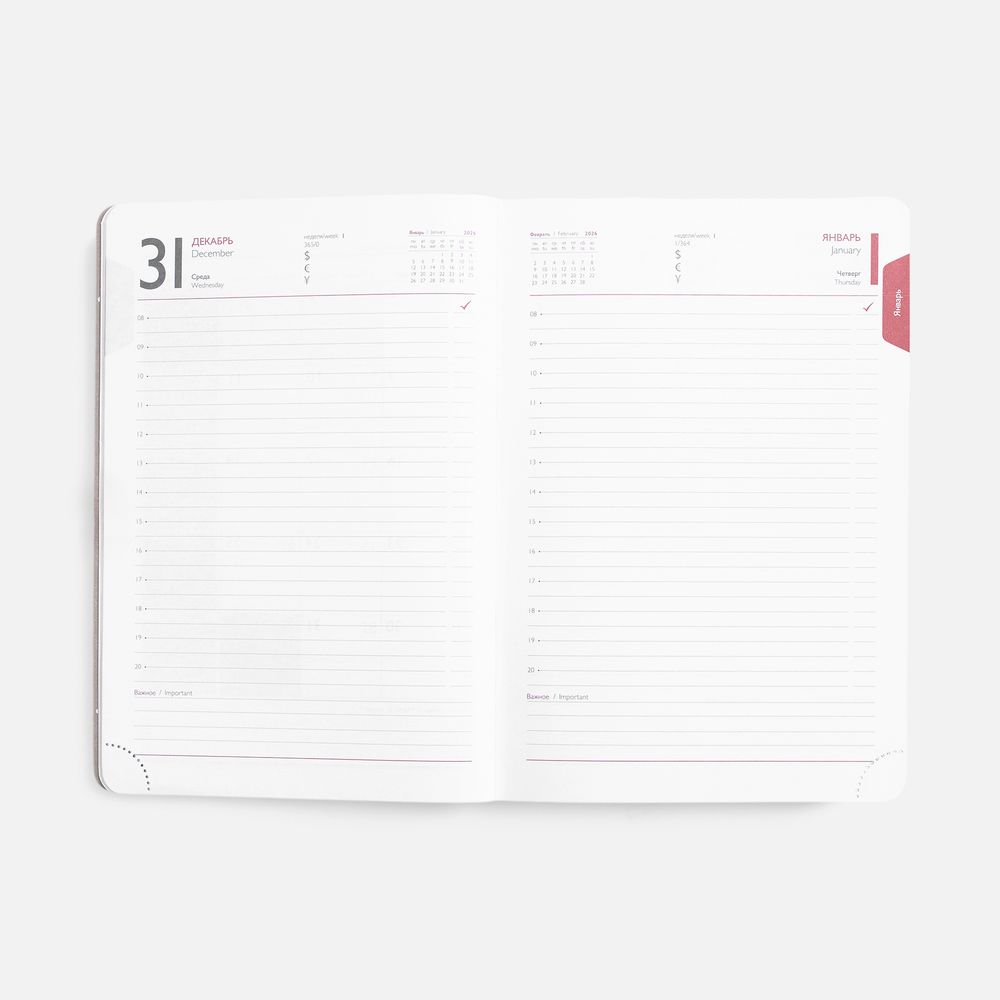 Ежедневник с твердой обложкой с поролоном из искусственной кожи Sarif, дополнен капталом и ляссе в цвет ежедневника. Блок c календарной сеткой и справочными материалами:Кол-во страниц — 352;Бумага — белая, плотность 70 г/м².