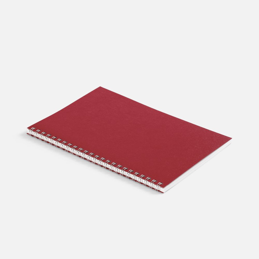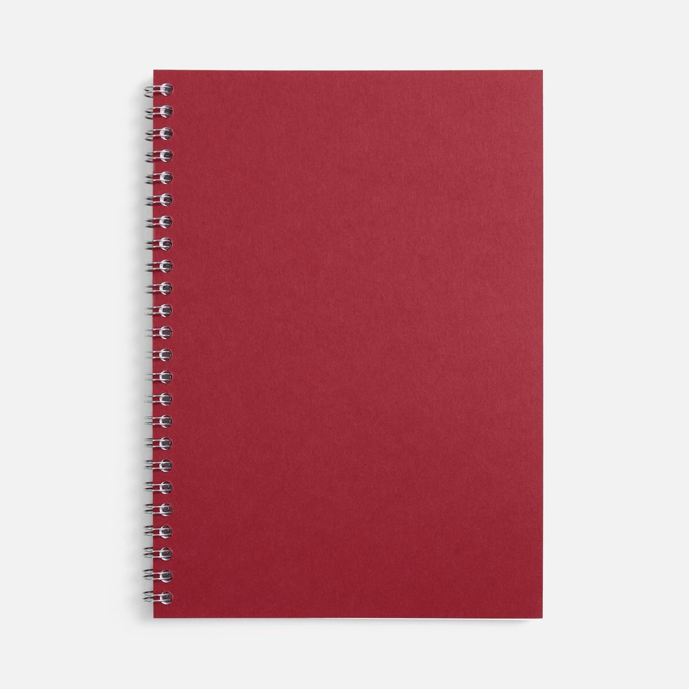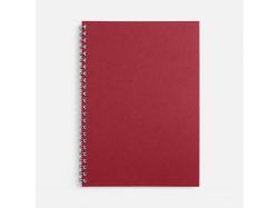 Блокнот формата А5 в клетку на пружине с цветной обложкой.Обложка из картона Macedonia красного цвета плотностью 260 г/м². Блок из белой бумаги плотностью 70 г/м², 50 листов.
