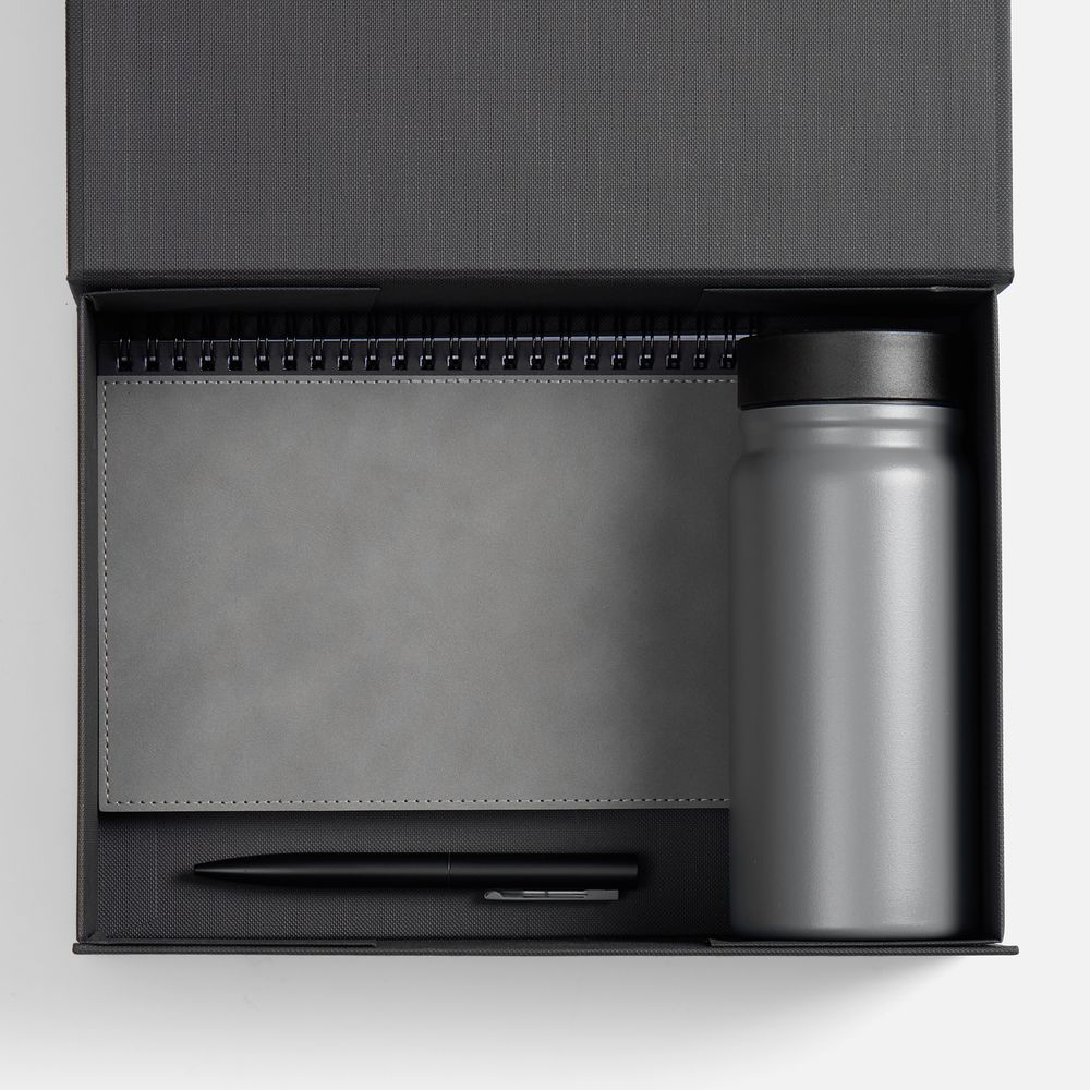 В качестве брендированного корпоративного подарка, который можно использовать в течение всего года, мы предложили набор из рюкзака, фонарика, термокружки и беспроводного зарядного устройства. Эти сувениры с логотипом отражают сферу деятельности группы компаний и будут полезны всем, кто ведет активную бизнес-деятельность.