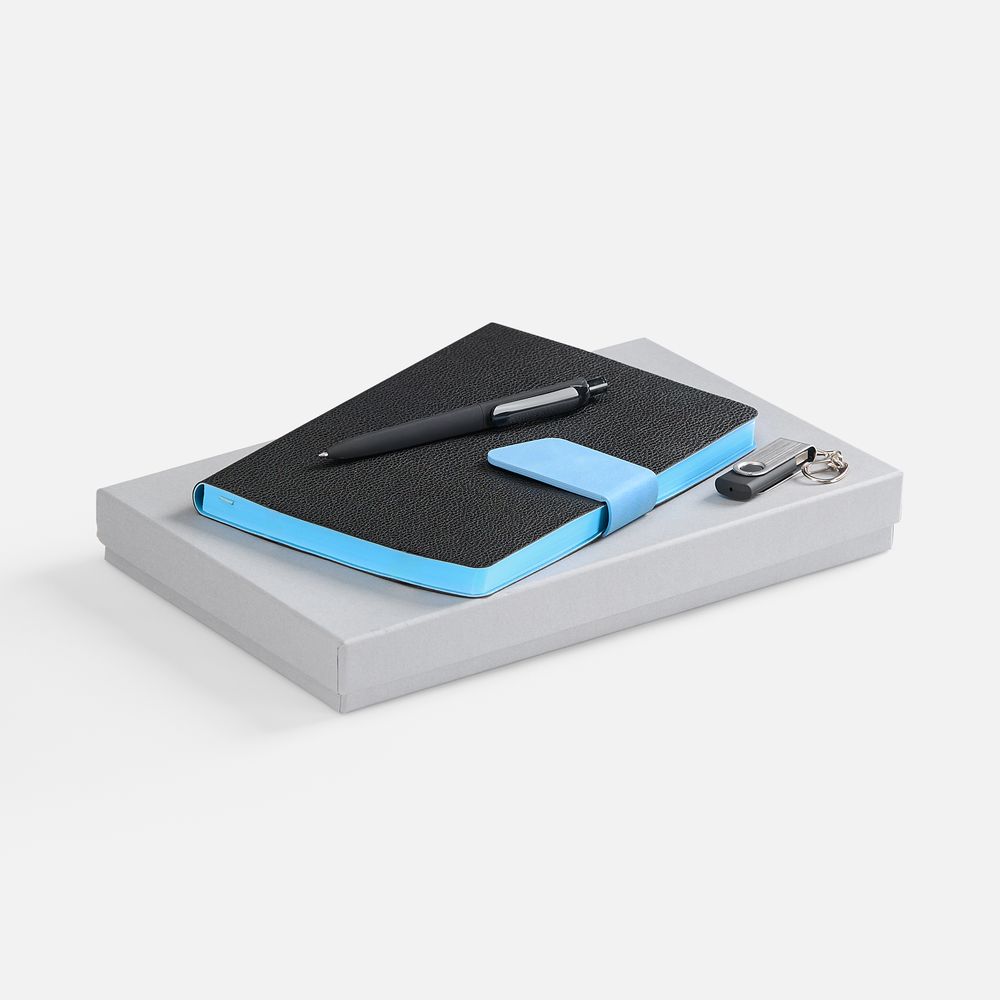 В качестве брендированного корпоративного подарка, который можно использовать в течение всего года, мы предложили набор из рюкзака, фонарика, термокружки и беспроводного зарядного устройства. Эти сувениры с логотипом отражают сферу деятельности группы компаний и будут полезны всем, кто ведет активную бизнес-деятельность.