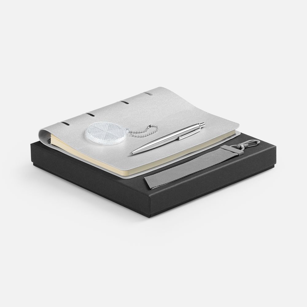 В качестве брендированного корпоративного подарка, который можно использовать в течение всего года, мы предложили набор из рюкзака, фонарика, термокружки и беспроводного зарядного устройства. Эти сувениры с логотипом отражают сферу деятельности группы компаний и будут полезны всем, кто ведет активную бизнес-деятельность.