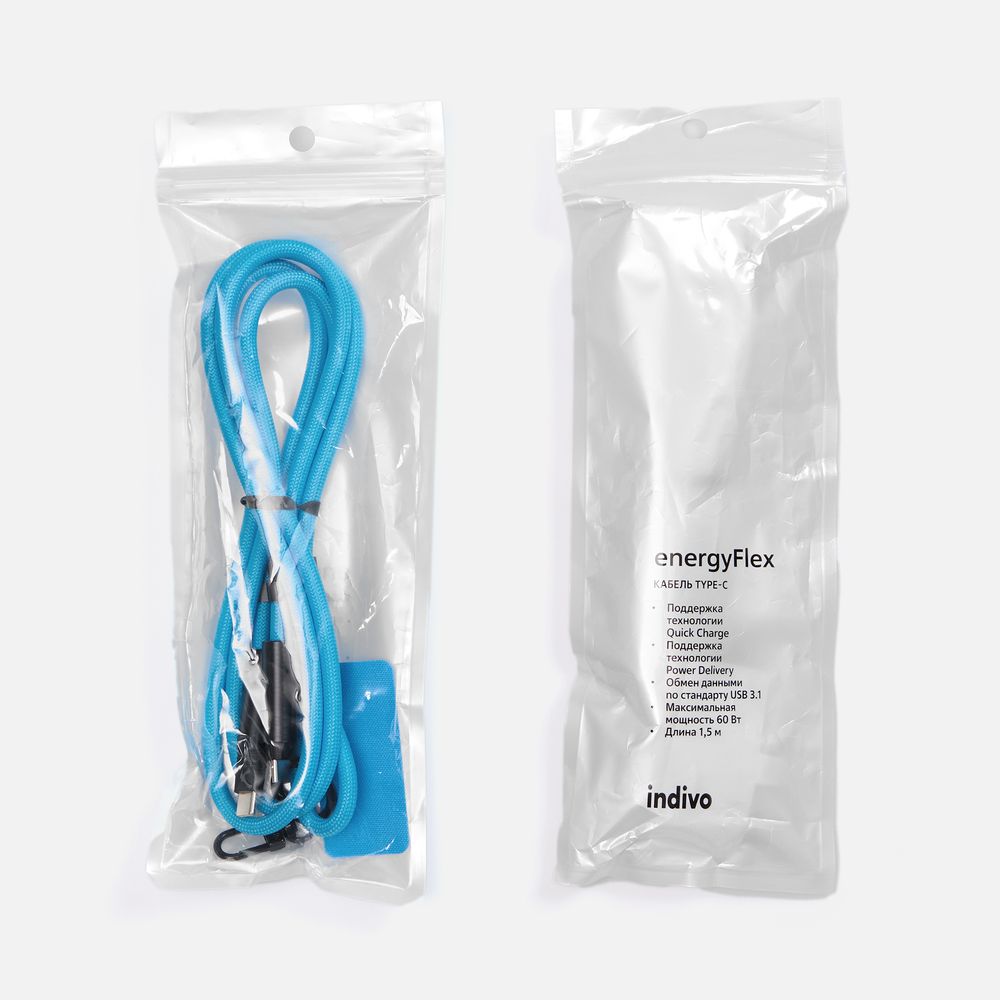 Кабель-ланьярд energyFlex Power Delivery 60 Вт, голубой