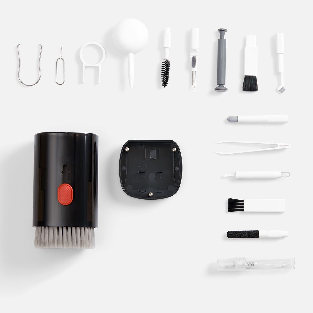 Набор для ухода за гаджетами Pinzell — решение для тех, кто любит поддерживать свои устройства в порядке и чистоте. Аксессуары набора помогут удалить пыль и загрязнения с разнообразных гаджетов: беспроводных и проводных наушников, кейса, планшета, телефона, клавиатуры, компьютера и фотоаппарата.Разнообразные щетки и аксессуары помогут убирать пыль из труднодоступных мест и мелких отверстий, даже прочищать сеточки наушников, что существенно улучшит слышимость.Набор предназначен для всех типов гаджетов. Он легко помещается в карман или сумку, поэтому удобен для использования в любом месте. Компактный размерВ комплекте: большая щетка, салфетка для ухода за дисплеем, контейнер для жидкости, пластиковый пинцет, щетка с жесткой щетиной, щетка с мягкой щетиной, чистящее перо со щеткой для наушников, насадка для чистки кейса от наушников, ершик для чистки кейса от наушников, щетка с короткой щетиной, щетка с наклонной щетиной, двусторонняя насадка для чистки разъемов зарядки, двусторонняя насадка для чистки камеры, инструмент для продувки, дуговой пинцет, ключ для отсека SIM-карты, инструмент для извлечения поврежденных ключейПоставляется в индивидуальной упаковке.