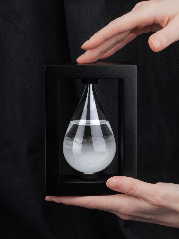 Штормгласс Elusive Mist демонстрирует законы и магию погоды в одном флаконе. Этот удивительный настольный аксессуар позволит на пару минут отвлечься от суеты, привести мысли в порядок и даже немного почувствовать себя предсказателем.Стеклянная колба наполнена смесью дистиллированной воды, камфоры и этанола. В теории, когда на небо набегают облачка, внутри капсулы тоже происходят изменения. Технология дошла к нам сквозь многие века, и до сих пор нет четкой уверенности, работает ли она верно. Методика наблюдения:Жидкость в колбе прозрачная — солнечно.Жидкость мутная — облачно, возможны осадки.Маленькие точки в жидкости — влажно, туман.Мутная жидкость с маленькими звездочками — гроза.Маленькие звездочки в жидкости солнечным зимним днем предвещают снег.Крупные хлопья — облачность в умеренные сезоны, зимой — снегопад.Иглистые кристаллы — заморозки.Нити у поверхности — ветрено.Быстрое появление крупного кристалла в чистой колбе при ясной погоде — гроза.Поставляется в индивидуальной упаковке.Научными наблюдениями не установлено зависимости качества кристаллизации от погодных условий. Для более корректной работы рекомендуем держать предмет на столе или у окна в течение нескольких дней. Не трясти и не переворачивать.Соблюдайте условия транспортировки: перевозка в режиме «тепло». При тиражном заказе рекомендуется обрешетка.