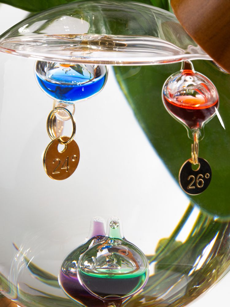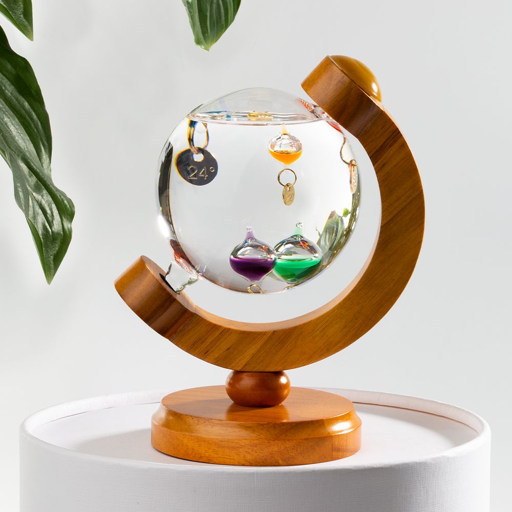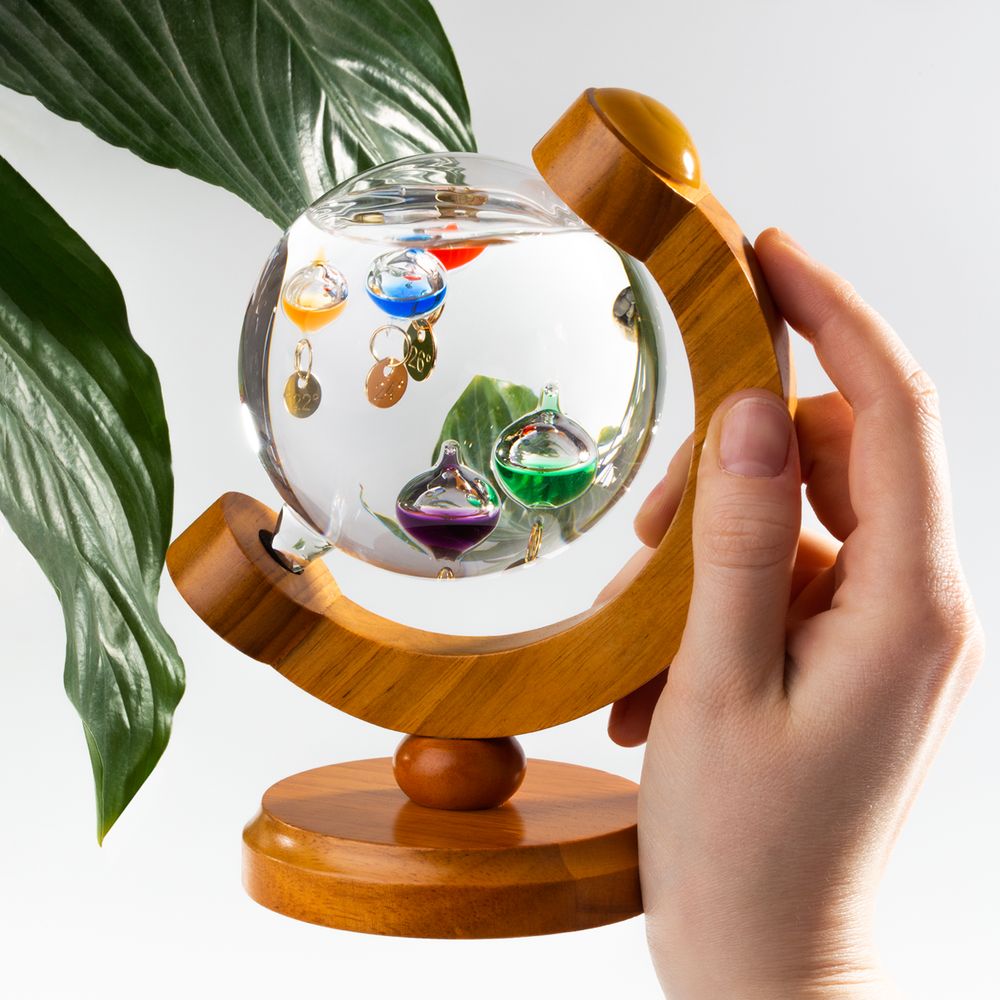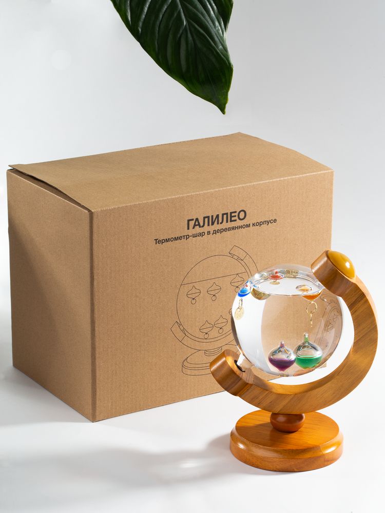 Термометр Галилео оригинальной формы, напоминающей глобус, добавит индивидуальности домашнему или офисному интерьеру. В основе его работы лежит физическая закономерность, впервые отмеченная великим Галилео Галилеем: плотность жидкости увеличивается при снижении температуры и уменьшается при ее повышении. И теперь стеклянные шарики в жидком парафине не только радуют глаз, но и позволяют с легкостью определить температуру в помещении.Термометр заполнен жидким парафином.Для использования в помещении.Температура определяется по значению на самом верхнем всплывшем шарике.Поставляется в картонной коробке.На коробке подробная инструкция на русском языке.