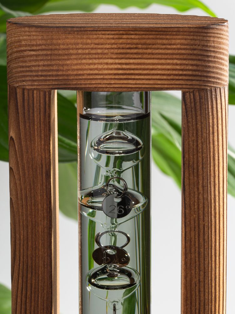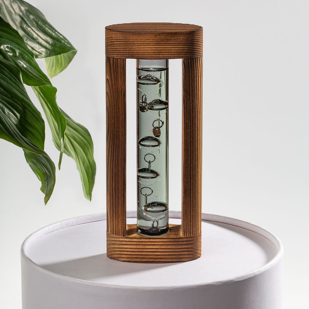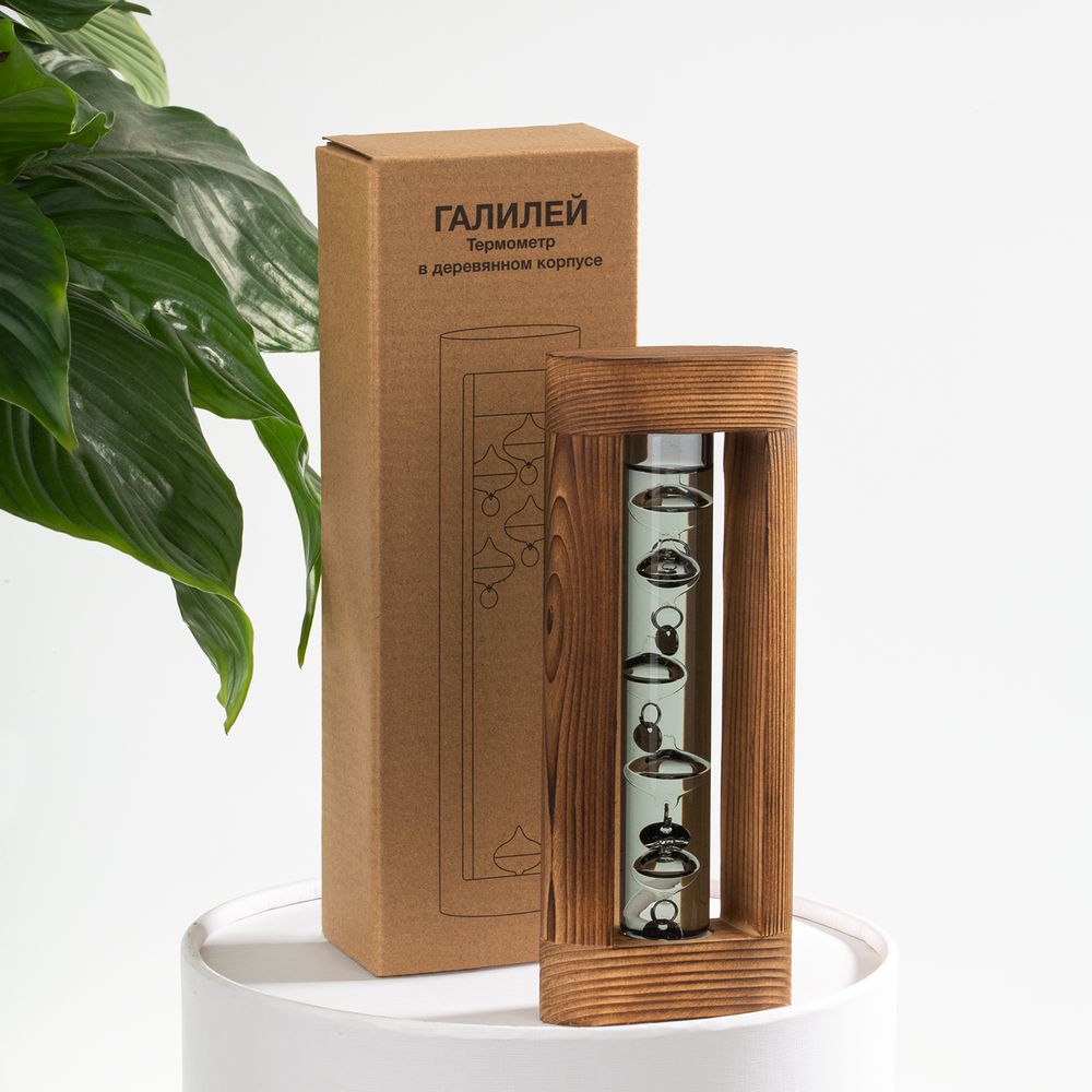 Любопытный термометр, изобретенный великим Галилео Галилеем, который первым обнаружил, что плотность жидкости увеличивается при снижении температуры и уменьшается при ее повышении.Деревянный корпус добавляет устройству солидности и делает его отличным деловым подарком для оформления офисного интерьера, вдобавок такой оригинальный термометр всегда порадует своей функциональностью и необычным исполнением.Термометр заполнен жидким парафином.Для использования в помещении.Температура определяется по значению на самом верхнем всплывшем шарике.Поставляется в картонной коробке.На коробке подробная инструкция на русском языке.
