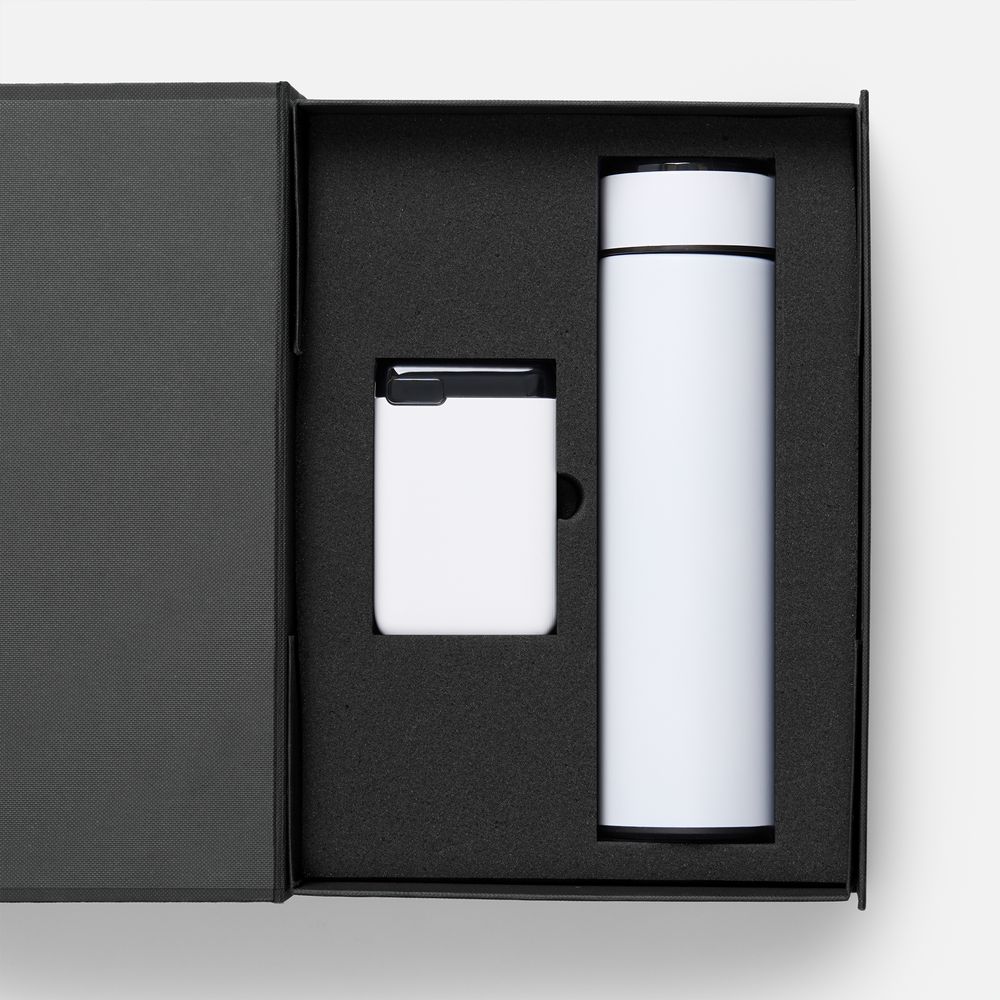 Набор Fast Trick — незаменимый спутник в дороге и офисе, с которым легко восполнить заряд энергии, а еще держать все под контролем, отслеживая как уровень заряда компактного аккумулятора, так и температуру напитка в легкой умной термобутылке. Плоский аккумулятор легко поместится даже в карман и поможет всегда оставаться на связи, а умная термобутылка выведет комфорт на новый уровень.Fast Trick. Все под контролем.Набор поставляется в подарочной коробке с ложементом.