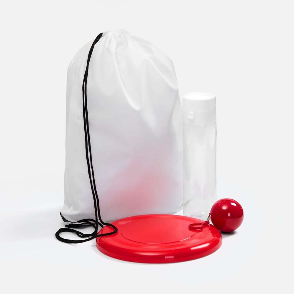 Минимальная стоимость, максимальная эффективность — набор FestiFun создан для массовых промо-кампаний, корпоративных подарков и событийного маркетинга.Универсальность — идеально подходит для любых активностей на свежем воздухе (фестивали, спортивные события, туризм, корпоративы).Практичность — бутылка, тарелка-фрисби и дождевик в футляре решают базовые потребности на отдыхе.Яркий брендинг — место для логотипа на каждом предмете.Компактность и легкость — для снижения логистических затрат.Емкость бутылки 650 мл.Объем рюкзака-мешка 11 л. Он выдерживает нагрузку до 4 кг.