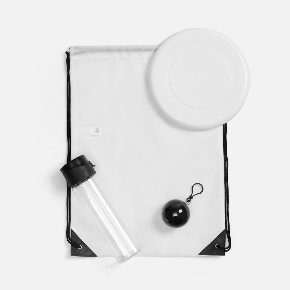 Минимальная стоимость, максимальная эффективность — набор FestiFun создан для массовых промо-кампаний, корпоративных подарков и событийного маркетинга.Универсальность — идеально подходит для любых активностей на свежем воздухе (фестивали, спортивные события, туризм, корпоративы).Практичность — бутылка, тарелка-фрисби и дождевик в футляре решают базовые потребности на отдыхе.Яркий брендинг — место для логотипа на каждом предмете.Компактность и легкость — для снижения логистических затрат.Емкость бутылки 650 мл.Объем рюкзака-мешка 11 л. Он выдерживает нагрузку до 4 кг.