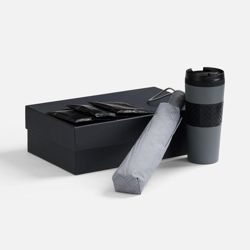 Суровая брутальность, приправленная иронией, — так можно емко охарактеризовать визуальный стиль и посыл Hard Work. Набор для трудоголиков и энтузиастов, которые не жалеют сил на любимой, но порой сложной работе. Кофе поможет всегда оставаться бодрым, термостакан сохранит его температуру, а зонт выручит в дождливый день. Чтобы всегда быть в тонусе и жить в активном ритме.
