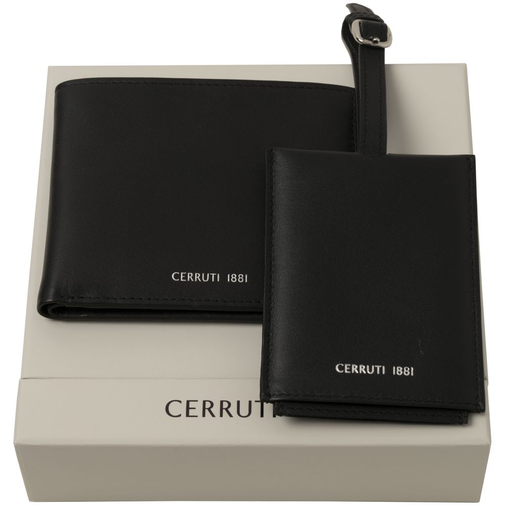 Кошелек и бирка из гладкой кожи с серебристым логотипом бренда Cerruti 1881.В набор входит:кошелек с 2 отделениями для банкнот и 6 карманами для картбирка для багажа с прозрачным окошком и сдвигающимся чехломУпакован в подарочную коробку.