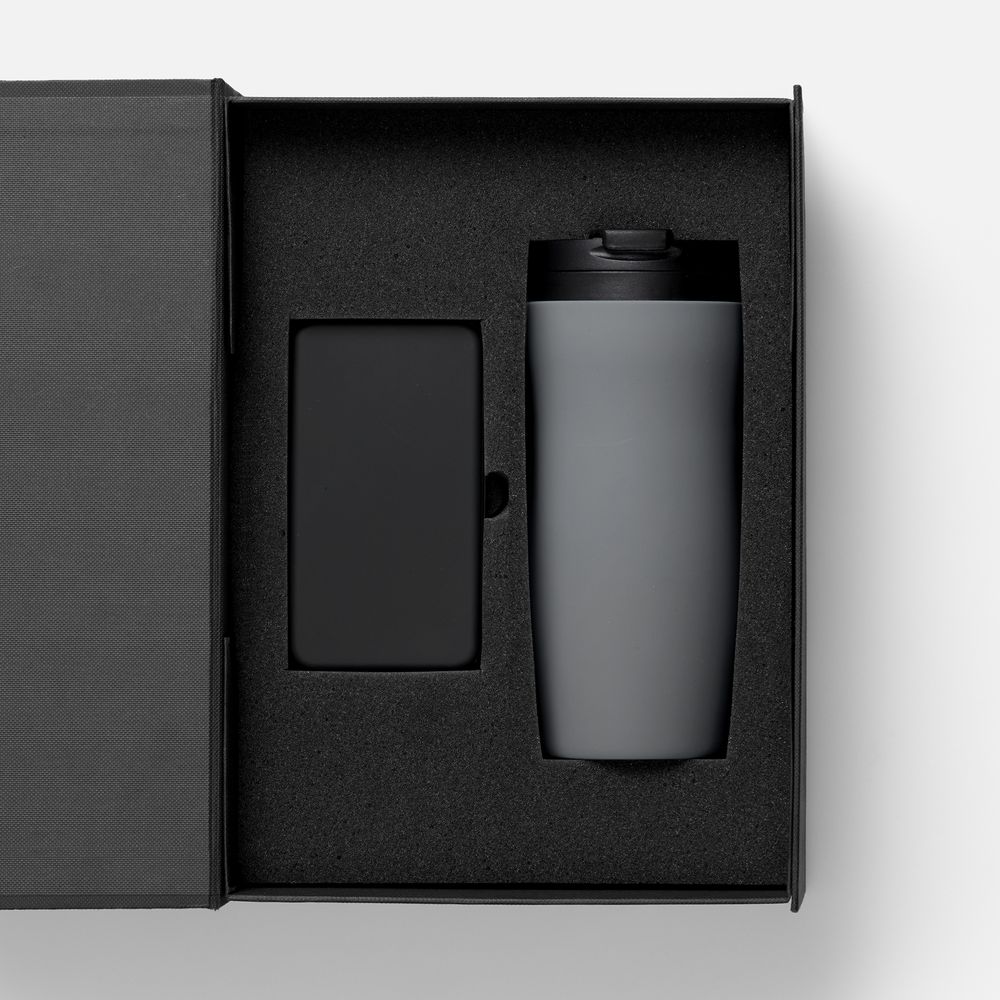 Набор из компактного аккумулятора и термостакана Formisto — практичный комплект для современных и активных людей. Он сочетает в себе функциональность и удобство: гаджет всегда будет на оптимальном уровне зарядки, а любимый напиток — под рукой, чтобы порадовать в любом месте.Formisto. Чистая форма заботы.Все составляющие набора имеют тактильно приятное покрытие софт-тач. Набор поставляется в подарочной коробке с ложементом.